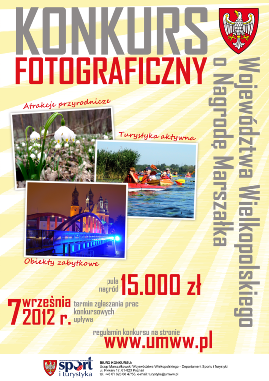 Regulamin konkursu oraz karta zgłoszeniowa dostępne są na stronie http://www.umww.pl/turystyka/konkurs-fotograficzny-o-nagrode-marszalka-wojewodztwa-wielkopolskiego.html. Zachęcam do zapoznania się z nimi i udziału w konkursie.