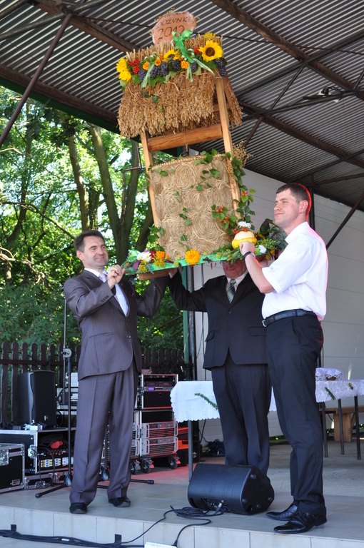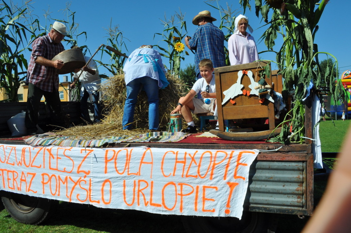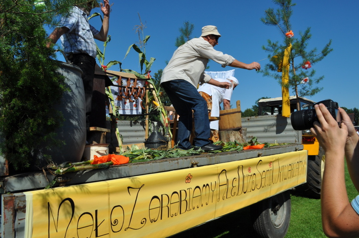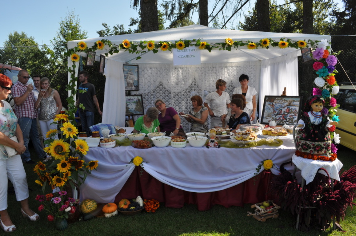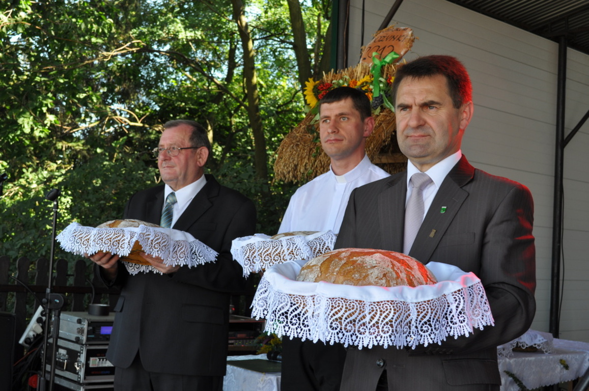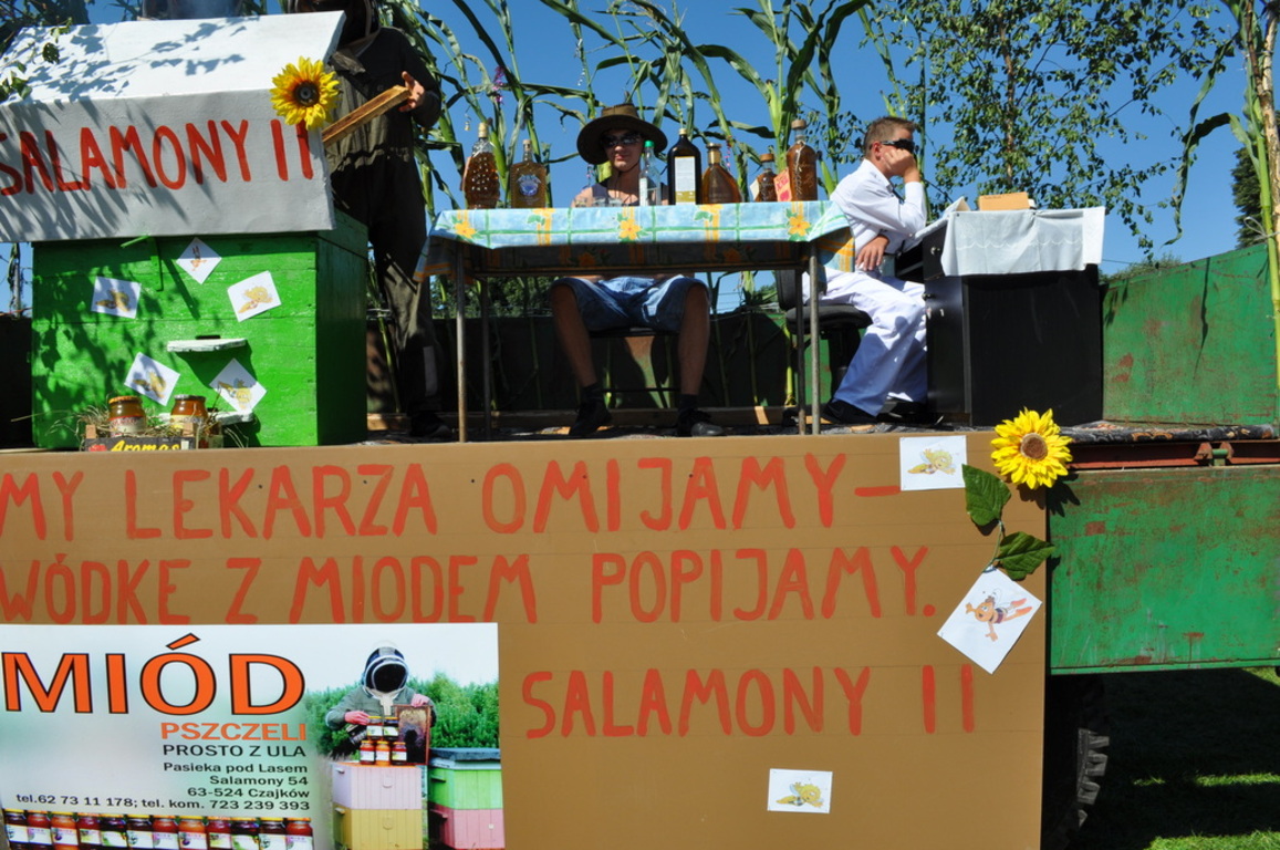W niedzielę 19 sierpnia w naszej gminie odbyło się największe w roku święto gospodarskie rolników będące ukoronowaniem ich całorocznego trudu. Uroczystości rozpoczęły się mszą dożynkową w intencji rolników i ich rodzin. Msza została odprawiona przez wikariusza naszej parafii ks. Tomasza Kubiaka. Starostami dożynek byli Bożena Gołdyn z Klonu oraz Sławomir Baś z Czajkowa, a asystowali im Agnieszka Żychlińska z Klonu i Eryk Górecki z Salamon I, którzy w czasie mszy złożyli na ołtarzu wotum dziękczynne w imieniu wszystkich rolników gminy Czajków. Po mszy sprzed kościoła ruszył tradycyjny korowód dożynkowy, przygotowany przez poszczególne sołectwa gminy. Nie zabrakło dowcipnych pomysłów, odwołujących się często do życia dnia codziennego na wsi. Korowód otwierała orkiestra dęta wraz z Mażoretkami, po niej bryczką jechali starostowie dożynek, asystenci, zaproszeni goście, Zespół Czajkowianki. Mieszkańcy sołectwa Czajków przysiółków Kosmale, Gałek i Brzazgał wnieśli piękny wieniec dożynkowy. Uroczystość obrzędowa rozpoczęła się odśpiewaniem hymnu państwowego oraz powitaniem wszystkich przybyłych gości przez Wójta Gminy. Następnie starostowie dożynek - Pani Bożena Gołdyn i Sławomir Baś - przekazali dorodny bochen chleba upieczony z tegorocznych zbóż gospodarzom dożynek: Wójtowi Gminy Henrykowi Plichcie, Przewodniczącemu Rady Gminy Andrzejowi Puchale i ks. Tomaszowi Kubiakowi. Po części oficjalnej rozpoczęła się część artystyczna. Kolejno wystąpili: Ewelina Łuszczek wokalistka zespołu Piano Song, zespół Czajkowianki, Gminna Orkiestra Dęta z Mażoretkami, dzieci z Publicznego Przedszkola w Czajkowie oraz Zespół The Shout. W międzyczasie nastąpiło rozstrzygnięcie konkursu „Na najlepszy placek drożdżowy”. Komisja w składzie Pani: Ewa Kulesza, Mariola Janicka, Irena Ślęzak oraz Anna Mądra orzekła jednogłośnie, że najlepszym i najsmaczniejszym plackiem drożdżowym jest wypiek członkiń KGW z Much.