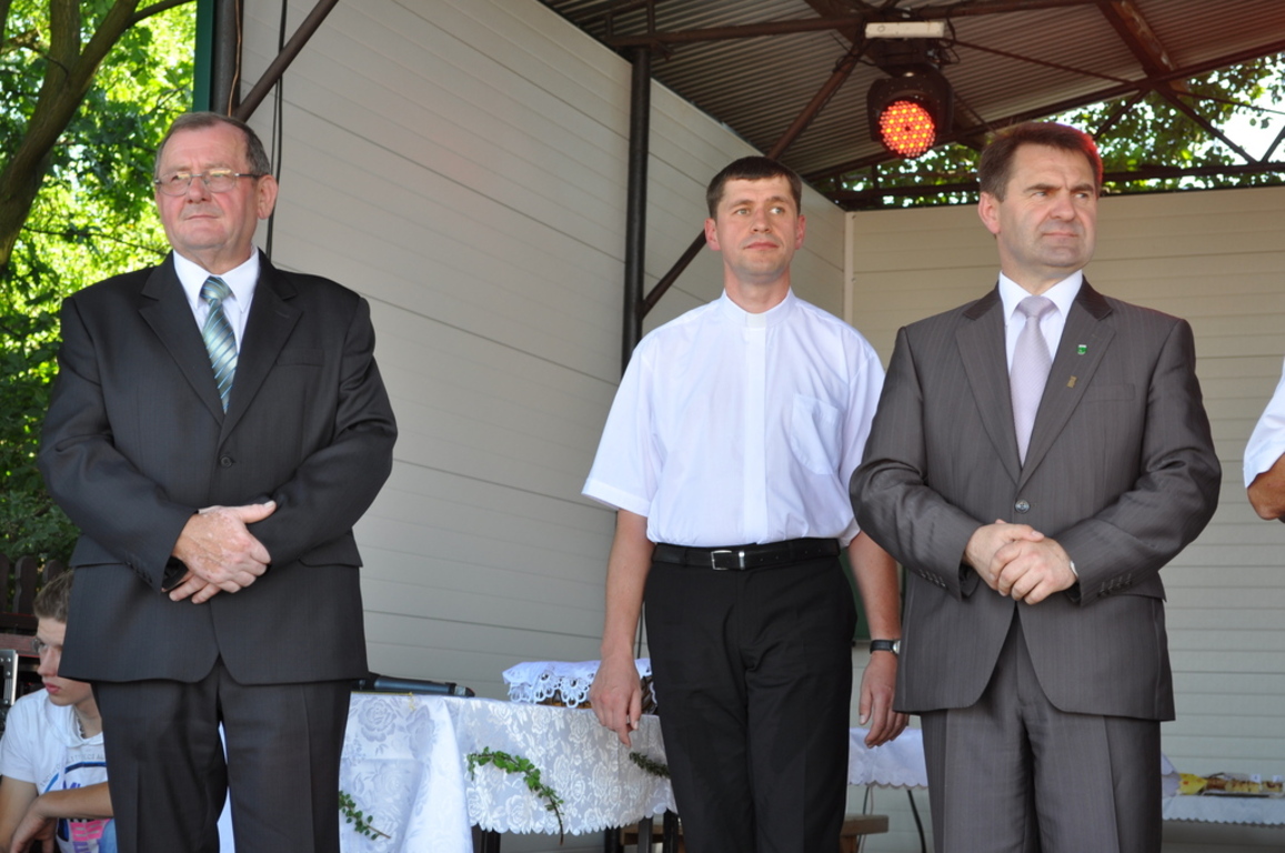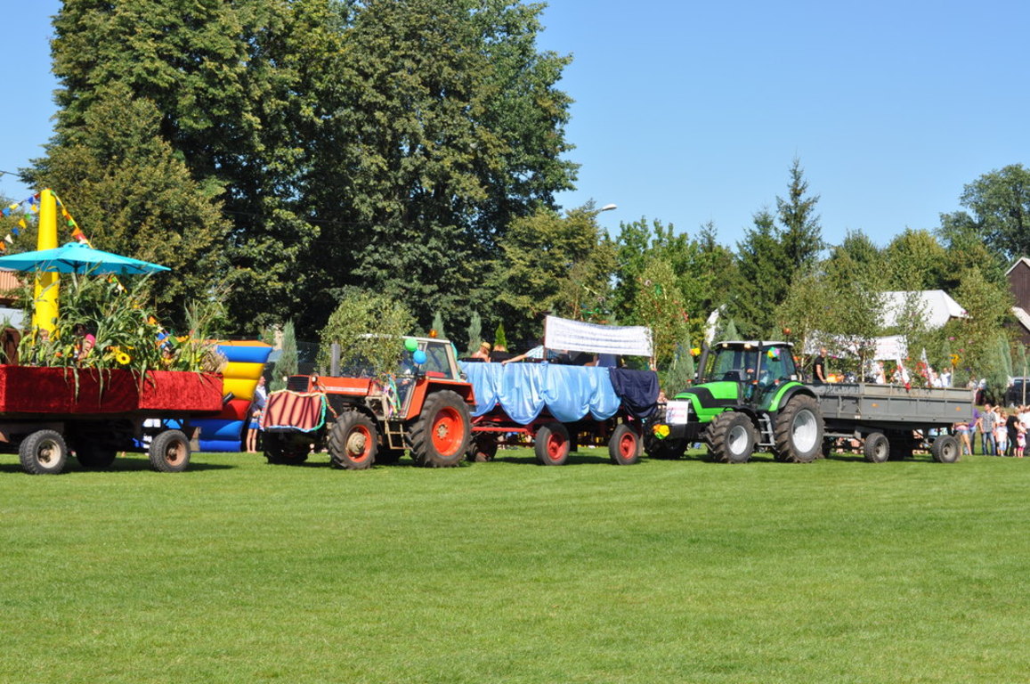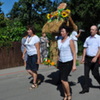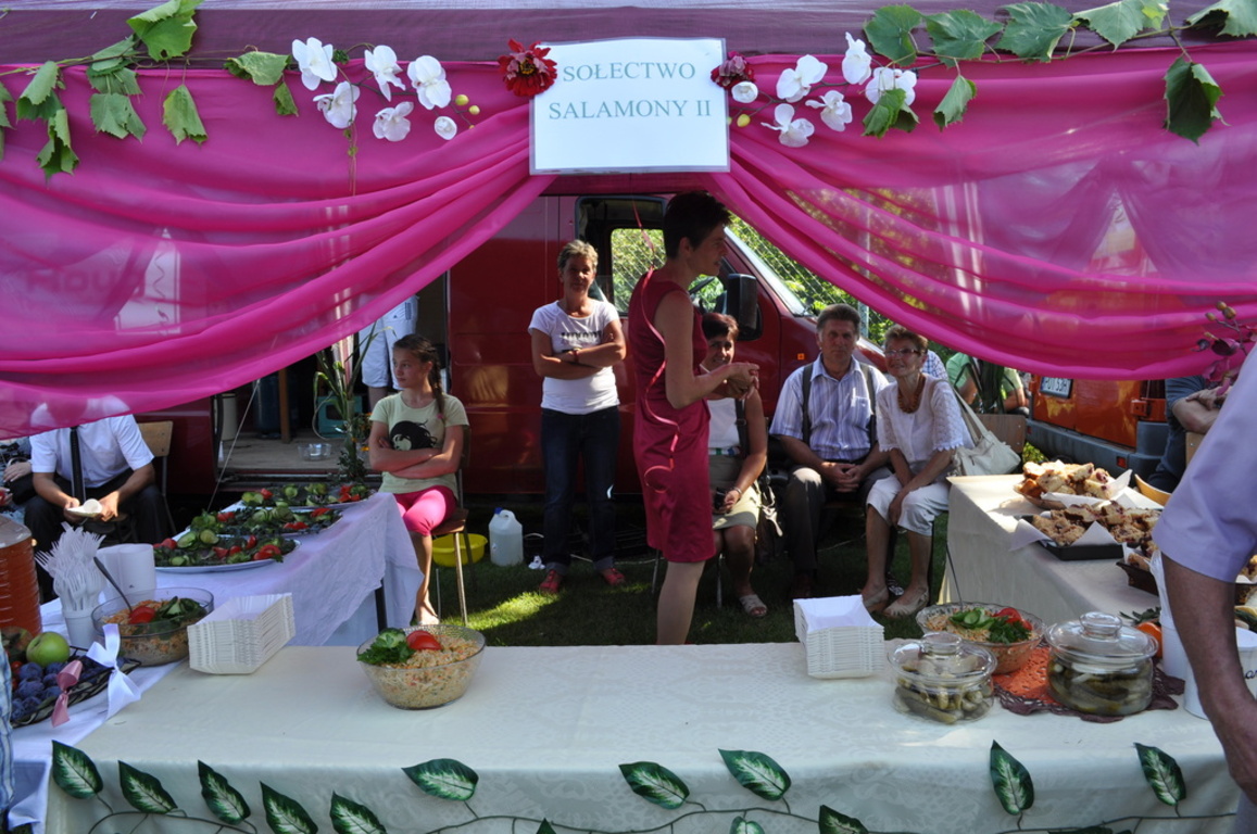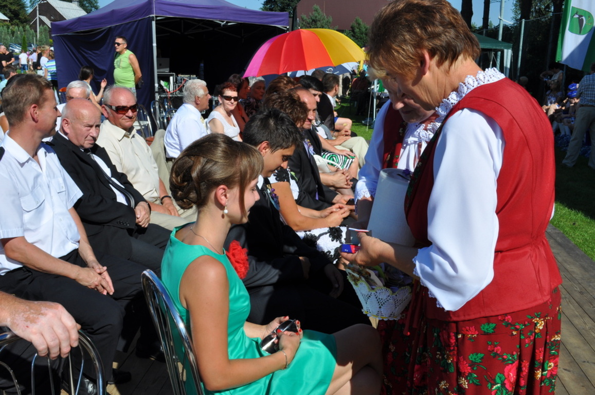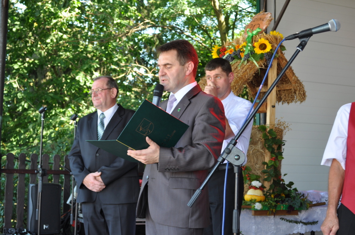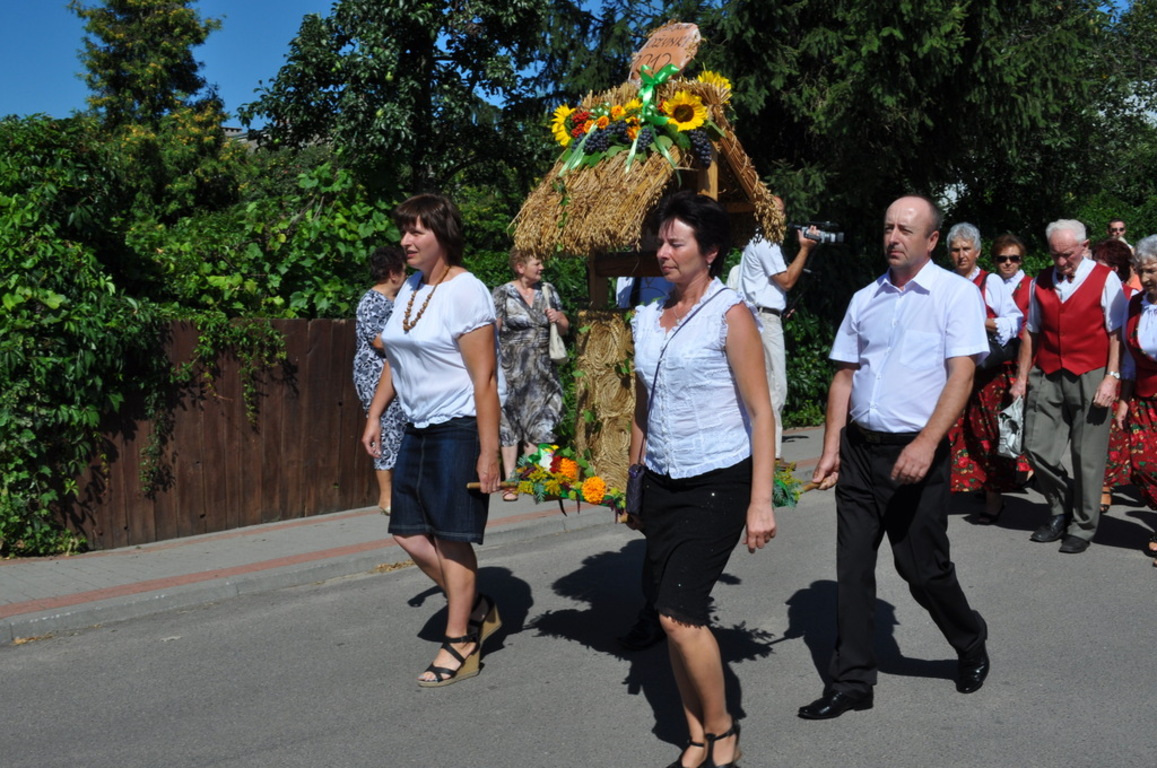 W niedzielę 19 sierpnia w naszej gminie odbyło się największe w roku święto gospodarskie rolników będące ukoronowaniem ich całorocznego trudu. Uroczystości rozpoczęły się mszą dożynkową w intencji rolników i ich rodzin. Msza została odprawiona przez wikariusza naszej parafii ks. Tomasza Kubiaka. Starostami dożynek byli Bożena Gołdyn z Klonu oraz Sławomir Baś z Czajkowa, a asystowali im Agnieszka Żychlińska z Klonu i Eryk Górecki z Salamon I, którzy w czasie mszy złożyli na ołtarzu wotum dziękczynne w imieniu wszystkich rolników gminy Czajków. Po mszy sprzed kościoła ruszył tradycyjny korowód dożynkowy, przygotowany przez poszczególne sołectwa gminy. Nie zabrakło dowcipnych pomysłów, odwołujących się często do życia dnia codziennego na wsi. Korowód otwierała orkiestra dęta wraz z Mażoretkami, po niej bryczką jechali starostowie dożynek, asystenci, zaproszeni goście, Zespół Czajkowianki. Mieszkańcy sołectwa Czajków przysiółków Kosmale, Gałek i Brzazgał wnieśli piękny wieniec dożynkowy. Uroczystość obrzędowa rozpoczęła się odśpiewaniem hymnu państwowego oraz powitaniem wszystkich przybyłych gości przez Wójta Gminy. Następnie starostowie dożynek - Pani Bożena Gołdyn i Sławomir Baś - przekazali dorodny bochen chleba upieczony z tegorocznych zbóż gospodarzom dożynek: Wójtowi Gminy Henrykowi Plichcie, Przewodniczącemu Rady Gminy Andrzejowi Puchale i ks. Tomaszowi Kubiakowi. Po części oficjalnej rozpoczęła się część artystyczna. Kolejno wystąpili: Ewelina Łuszczek wokalistka zespołu Piano Song, zespół Czajkowianki, Gminna Orkiestra Dęta z Mażoretkami, dzieci z Publicznego Przedszkola w Czajkowie oraz Zespół The Shout. W międzyczasie nastąpiło rozstrzygnięcie konkursu „Na najlepszy placek drożdżowy”. Komisja w składzie Pani: Ewa Kulesza, Mariola Janicka, Irena Ślęzak oraz Anna Mądra orzekła jednogłośnie, że najlepszym i najsmaczniejszym plackiem drożdżowym jest wypiek członkiń KGW z Much.