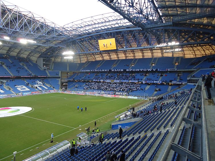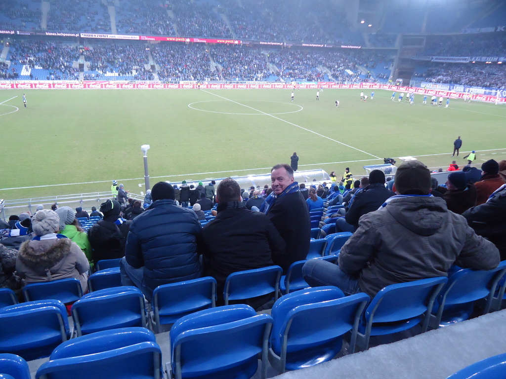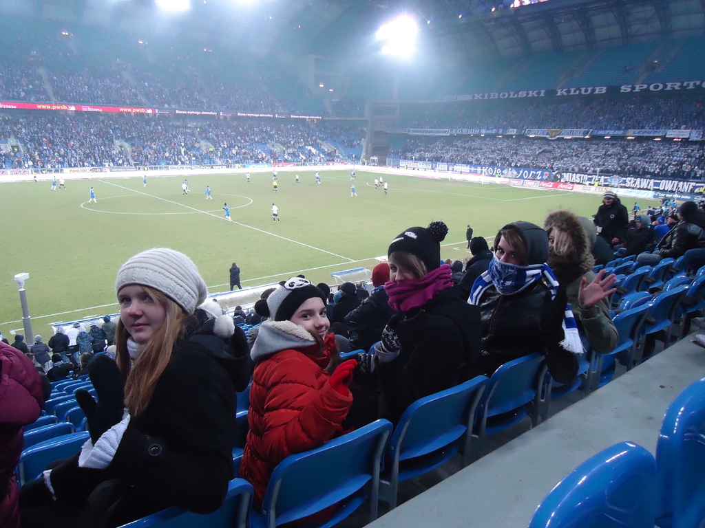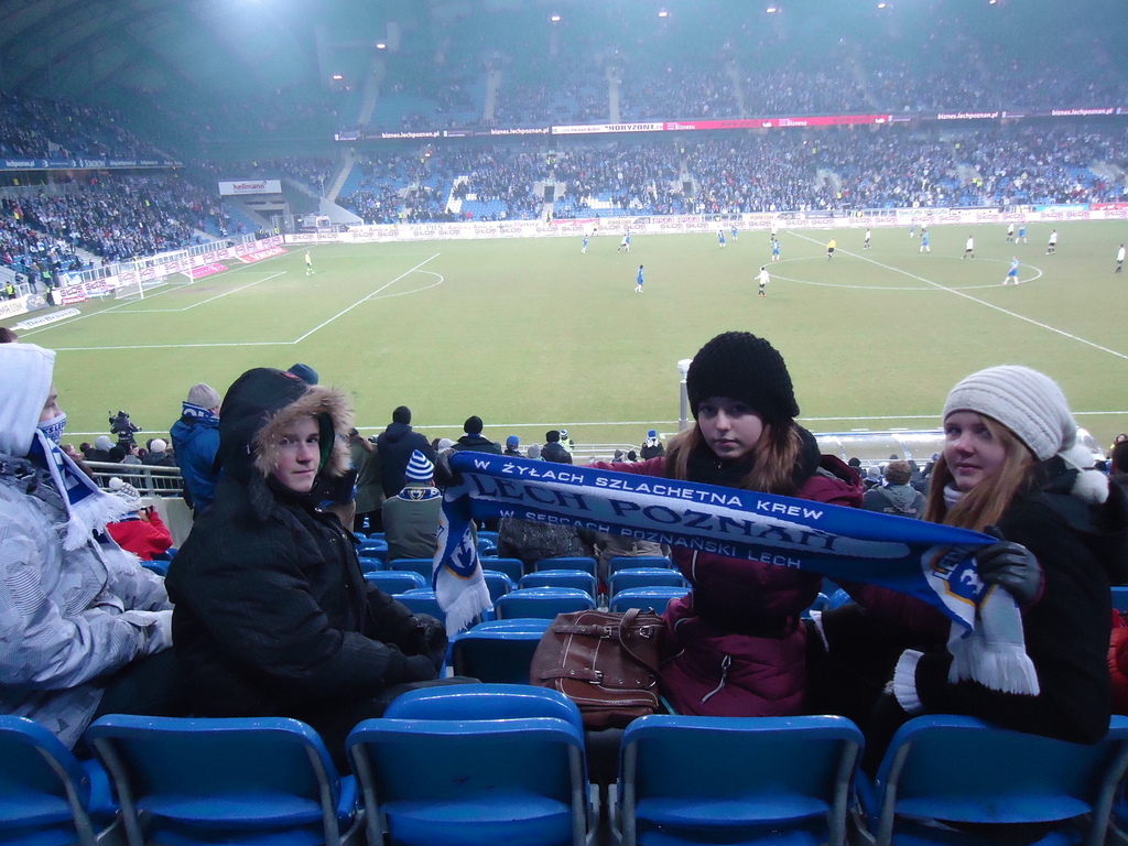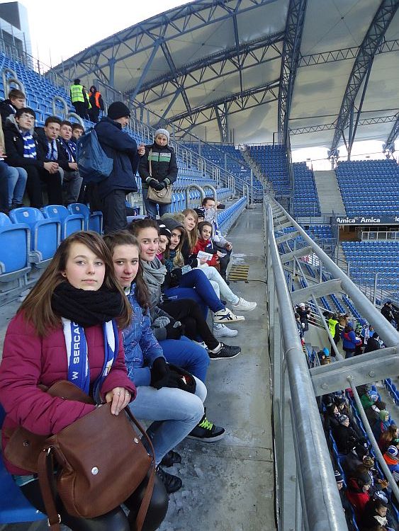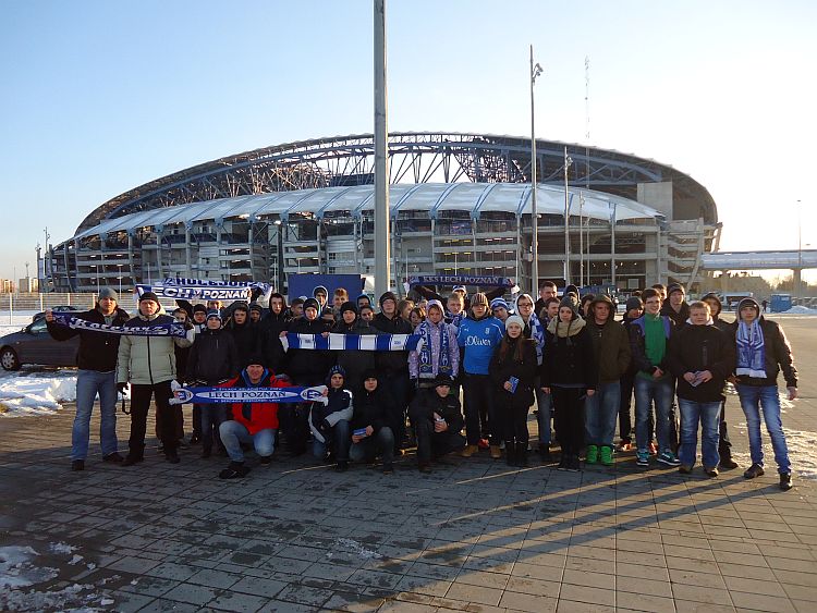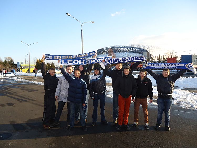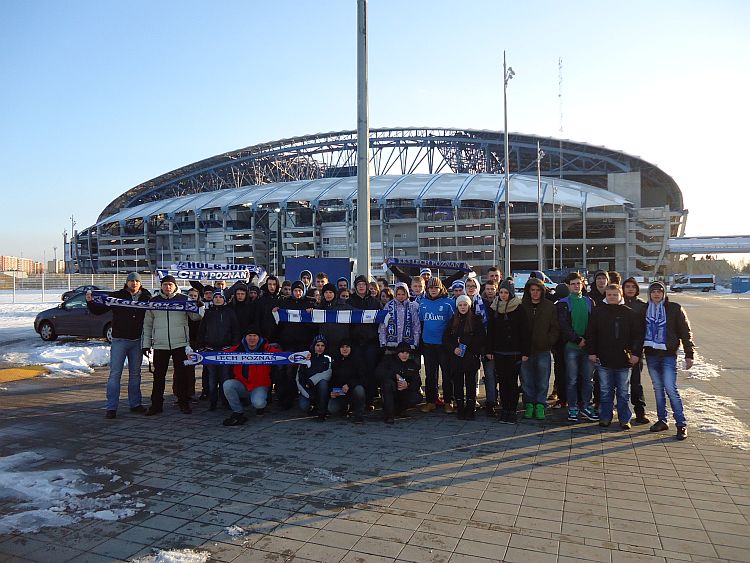 W dniu 16 marca 2013r. 30 uczniów Gimnazjum w Czajkowie wzięło udział w akcji „Gimnazjaliści na Kolejorza” zorganizowanej przez klub sportowy KKS Lech Poznań. Wraz z grupą 20 gimnazjalistów z Kraszewic pojechaliśmy dopingować piłkarzy Lecha w meczu z PGE GKS Bełchatów. Wyjechaliśmy z Czajkowa o godzinie 12.15 i na parkingu pod stadionem w Poznaniu byliśmy przed godziną 16. Po odebraniu biletów i śpiewników zrobiliśmy kilka pamiątkowych zdjęć i poszliśmy zwiedzić stadion na zewnątrz. Następnie podzieliliśmy się na grupy i wraz z opiekunami weszliśmy na stadion ok. godziny 17. Większość uczestników wycieczki pierwszy raz była na tak dużym obiekcie sportowym, więc po zobaczeniu stadionu od wewnątrz wrażenie było niezapomniane. Mieliśmy bilety na różne sektory, więc jedna część grupy kibicowała Lechowi niemal spod samego dachu, natomiast druga część tuż zza ławki rezerwowych gości. Byliśmy wśród rzeszy niemal 9 tysięcy gimnazjalistów z całej Wielkopolski. Pierwsza połowa minęła szybko i najważniejszym jej wydarzeniem było pojawienie się tuż obok nas Mirosława Okońskiego- ikony poznańskiej drużyny. Było coraz zimnej, więc gorąca herbata w przerwie meczu dobrze nam zrobiła. Druga połowa to wielkie emocje i mnóstwo niewykorzystanych okazji przez piłkarzy Lecha do zdobycia bramki, wielokrotnie więc zrywaliśmy się z krzesełek i zakrywaliśmy twarze rękoma w geście rozczarowania. Cóż, tym razem nie pomogliśmy „Kolejorzowi” w przerwaniu serii meczów bez zwycięstwa z niewygodnym przeciwnikiem, choć trzeba obiektywnie przyznać, że zawodnicy z Bełchatowa w niczym nie przypominali drużyny zajmującej ostatnie miejsce w tabeli ekstraklasy, co więcej byli wymagającym rywalem i mieli swoją „piłkę meczową’ już w doliczonym czasie gry. Po meczu szybko udaliśmy się do autokaru, bo ziąb coraz bardziej nam dokuczał. W drodze powrotnej wspólnie śpiewaliśmy hymn Lecha i piosenki, którymi dopingowaliśmy piłkarzy na stadionie. Podróż powrotna minęła bardzo szybko i przed północą byliśmy z powrotem w Czajkowie. Wielu uczestników wyjazdu od razu zadeklarowało chęć zobaczenia kolejnego meczu „Kolejorza”, więc jest nadzieja, że „narodzili” się nowi, wierni kibice” poznańskiej lokomotywy”. Serdecznie podziękowania dla p. Marka Wrzoska, p. Tomasza Kędzi, p. Dawida Sobieraja i p. Jacka Puchały za pomoc w zorganizowaniu wycieczki i opiekę nad jej uczestnikami.