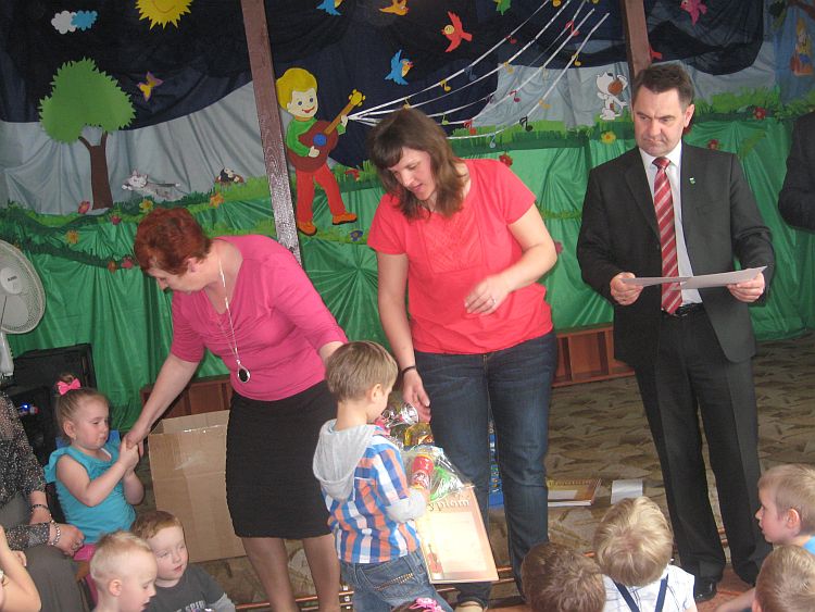 Wszyscy wykonawcy otrzymali dyplomy oraz jednakowe, równorzędne nagrody – mikrofony i tamburyna. Dodatkowe nagrody w postaci trąbek do rowerków dla dzieci ufundowała pani Danuta Nowak. Serdecznie dziękujemy za okazaną życzliwość i wsparcie.