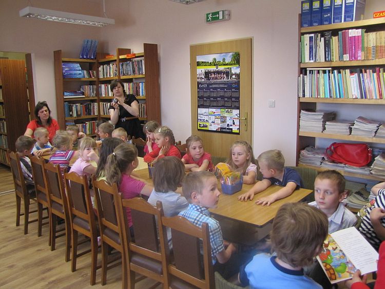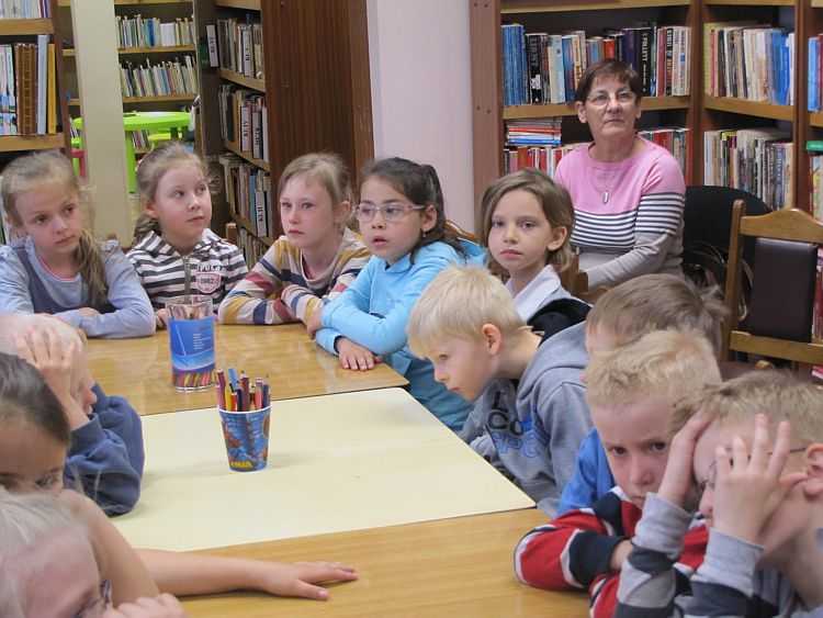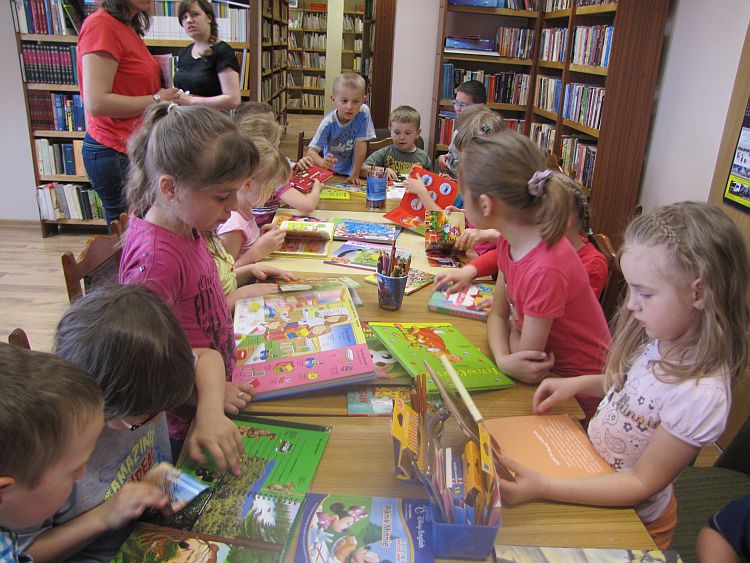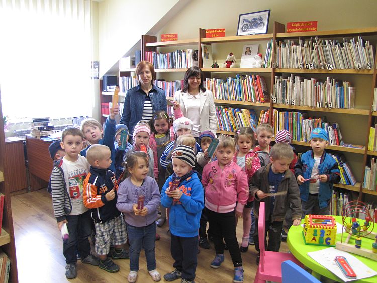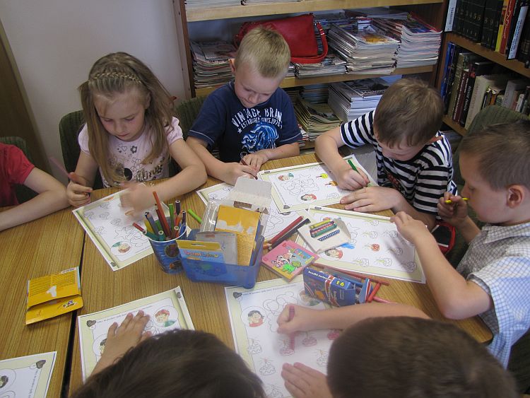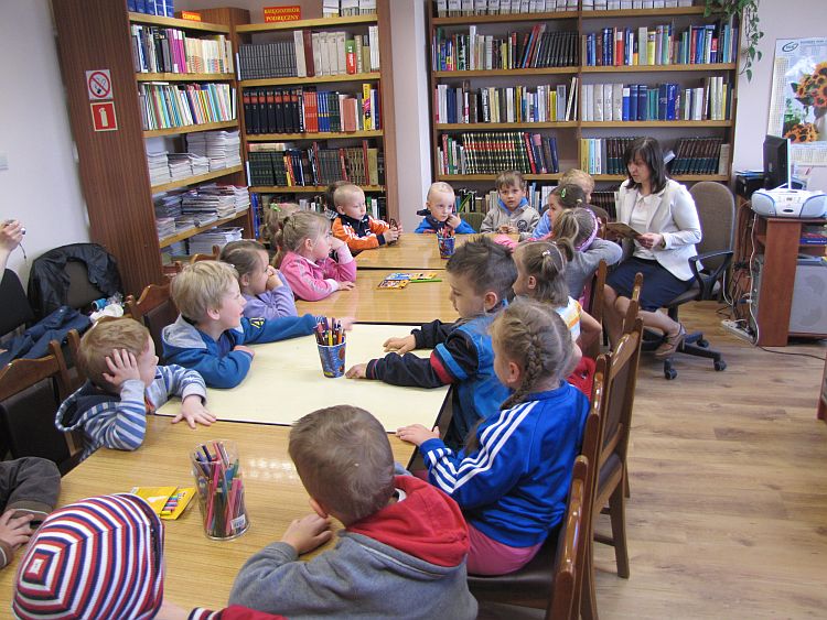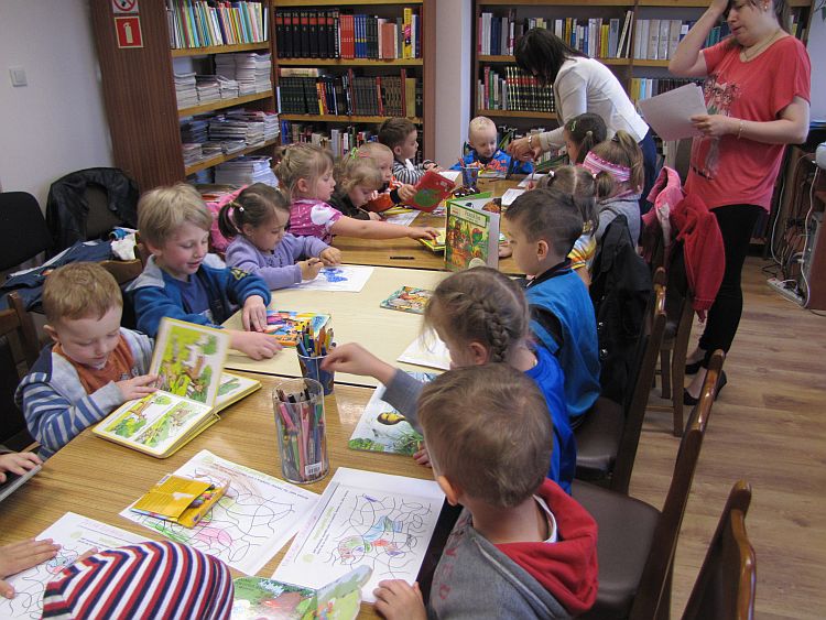 Ostatnim wydarzeniem w ramach Tygodnia Bibliotek była wizyta grupy starszaków z Przedszkola. Dzieci wysłuchały bajki pt.: „Franklin czyta kolegom”, kolorowały i rozwiązywały zagadki graficzne, zostały też zaproszone w niezwykłą podróż do krainy zagadek, podczas której mogły się wykazać znajomością postaci z bajek oraz ich tytułów.