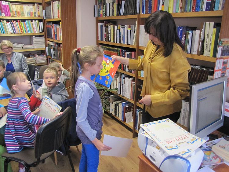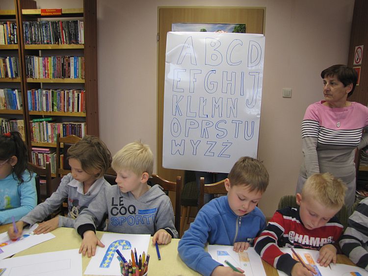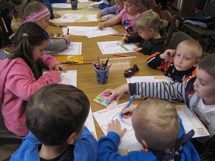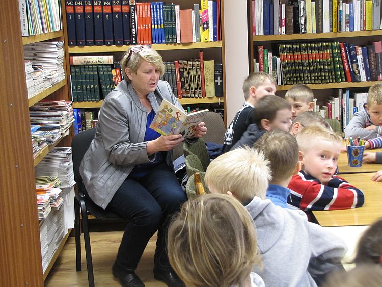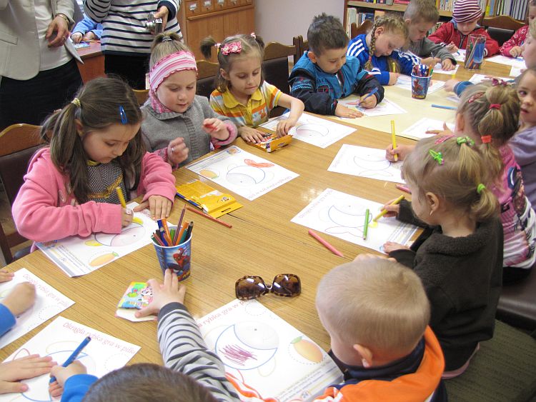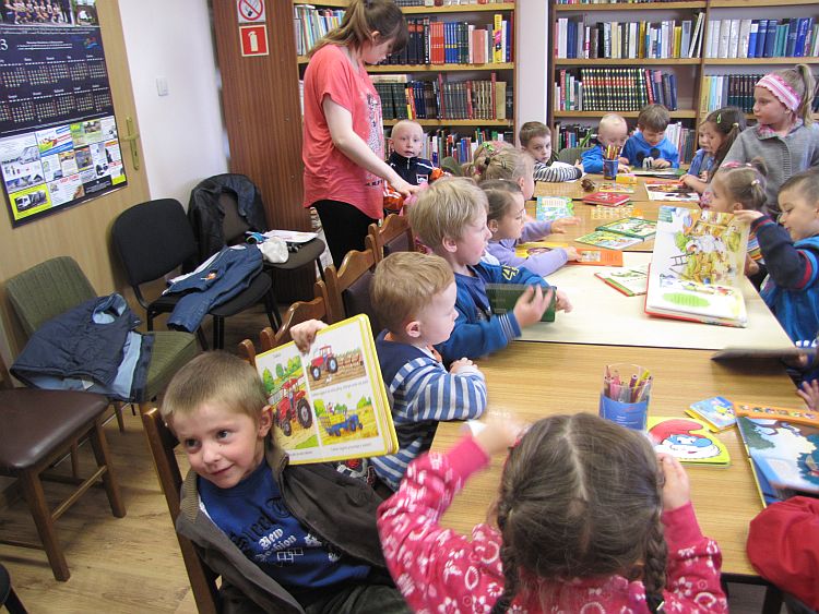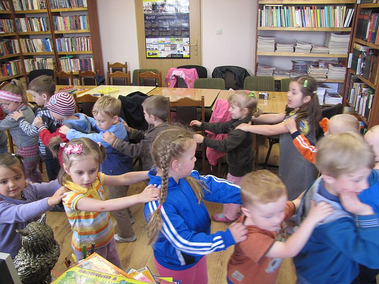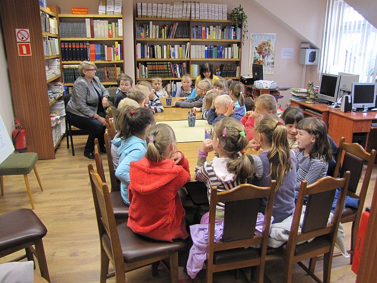 Ostatnim wydarzeniem w ramach Tygodnia Bibliotek była wizyta grupy starszaków z Przedszkola. Dzieci wysłuchały bajki pt.: „Franklin czyta kolegom”, kolorowały i rozwiązywały zagadki graficzne, zostały też zaproszone w niezwykłą podróż do krainy zagadek, podczas której mogły się wykazać znajomością postaci z bajek oraz ich tytułów.
