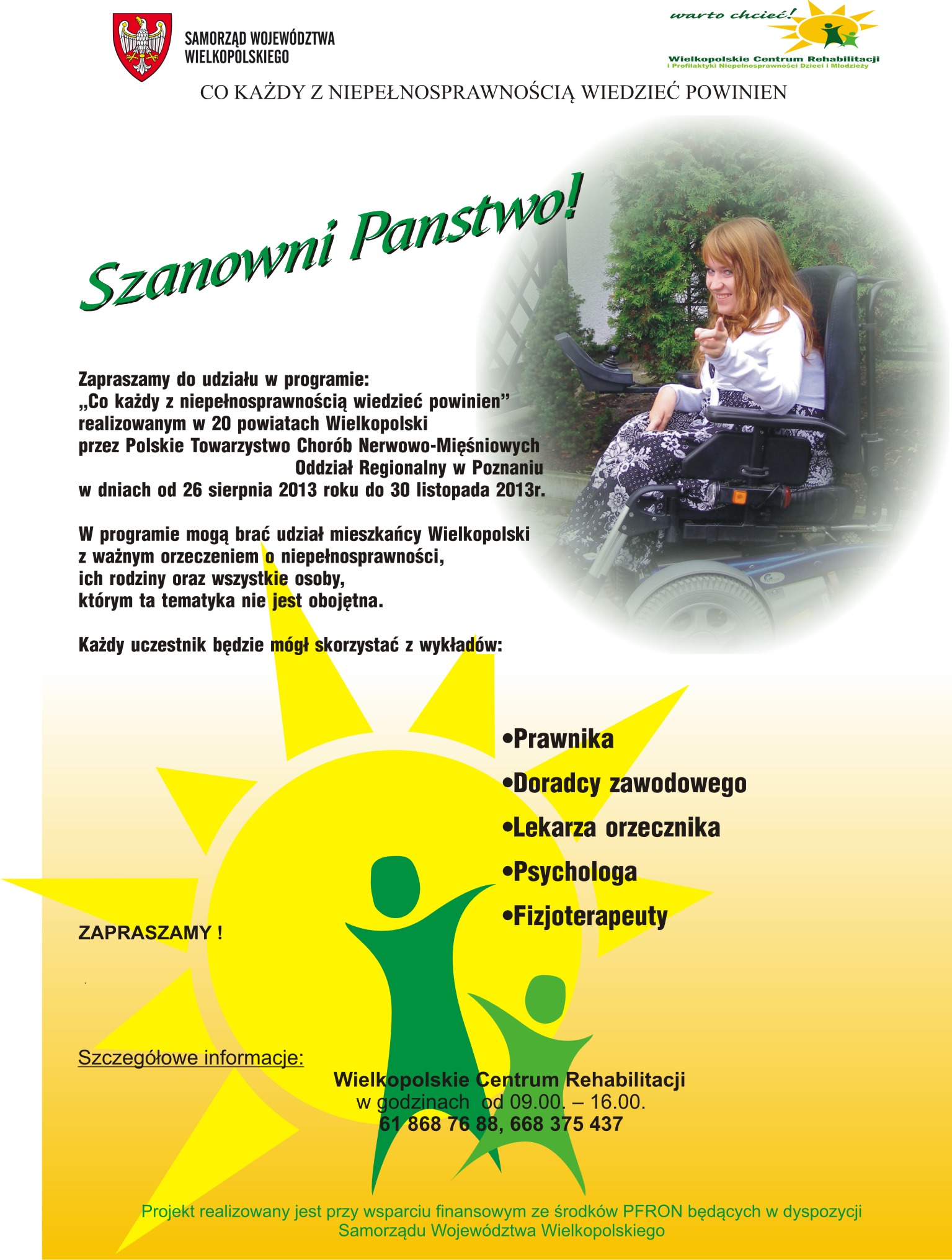la osób z niepełnosprawnocią w ramach programu "Co każdy z niepełnosprawnociš wiedzieć powinien". Program realizowany jest przy wsparciu finansowym ze środków