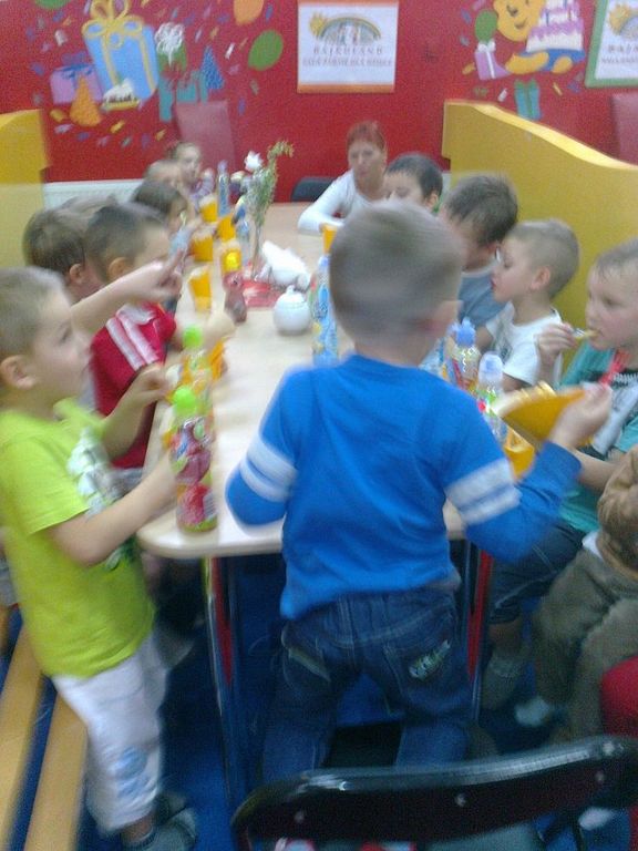 W Bajkolandzie przez dwie godziny, wśród kolorowych piłeczek, zjeżdżalni, tajemniczych przejść, jeździków, bujaków, autek, trampoliny, klocków i zabawek dzieci mogły wyszaleć się do woli. Zabawy sprawiły im wiele radości, zaspokoiły naturalną potrzebę ruchu, rozwijały kontakt oraz relacje koleżeńskie. Na koniec zjadły wspólny posiłek.