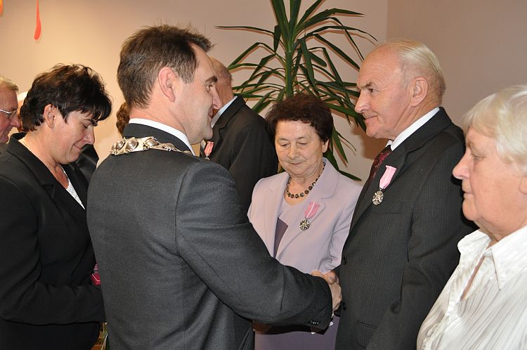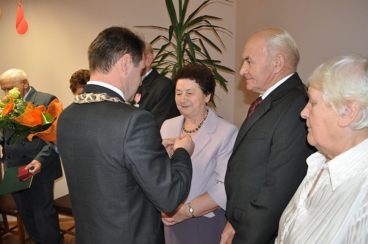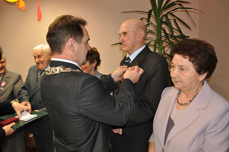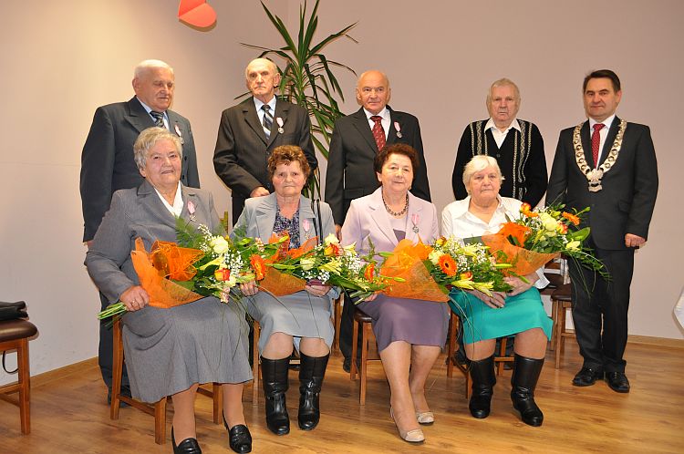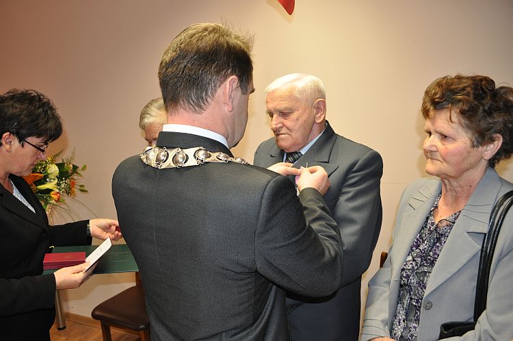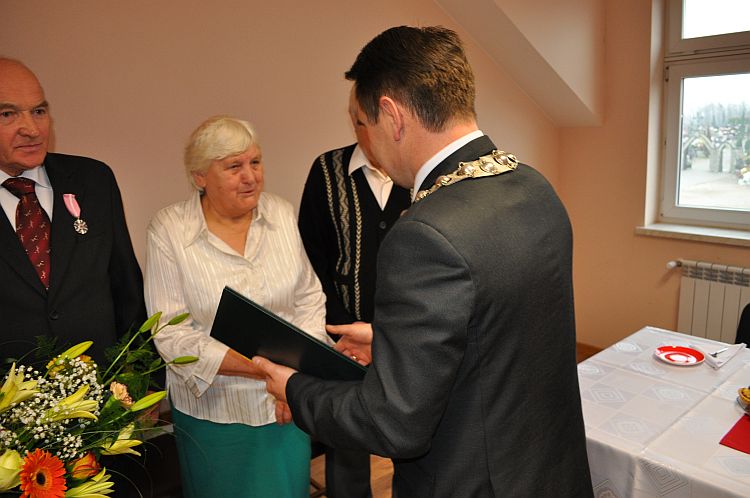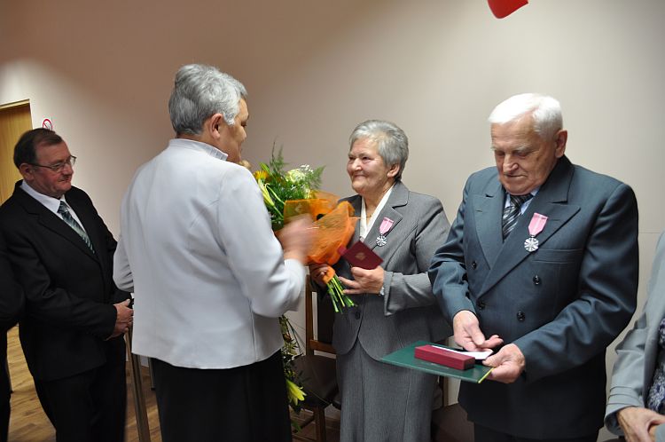 Wójt Gminy Henryk Plichta oraz Z-ca Kierownika Urzędu Stanu Cywilnego Anna Zielińska wręczyli 4 parom przyznane przez Prezydenta Rzeczypospolitej Polskiej medale „ Za Długoletnie Pożycie Małżeńskie”. Wręczając medale Wójt złożył małżonkom gratulacje i wyrazy uznania za dochowanie wierności i odpowiedzialności małżeńskiej. Życzył Jubilatom zdrowia i wszelkiej pomyślności, by nadal towarzyszyła im miłość, zrozumienie, prawdziwa i nierozerwalna wzajemna przyjaźń. Małżonkowie otrzymali także listy gratulacyjne oraz wiązanki kwiatów.