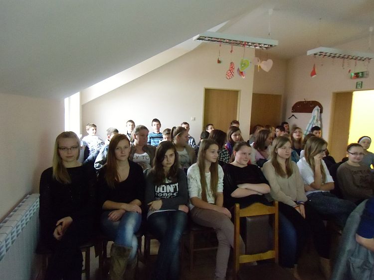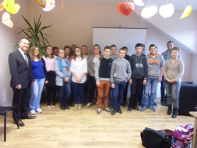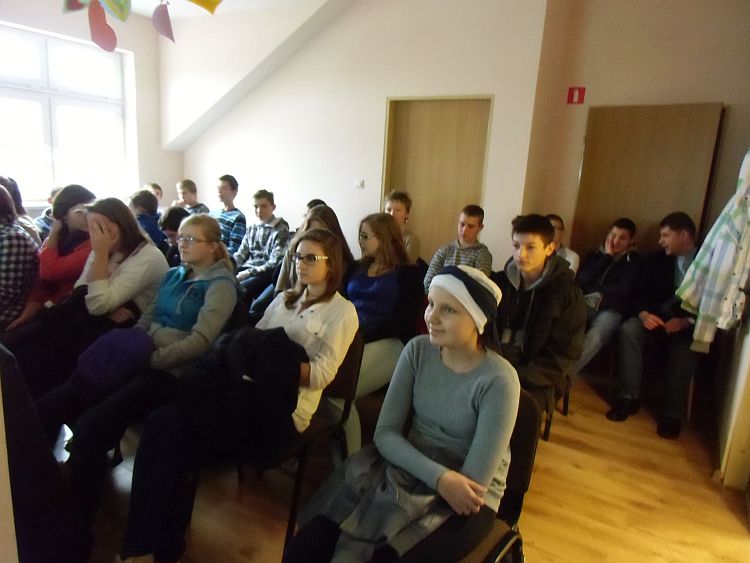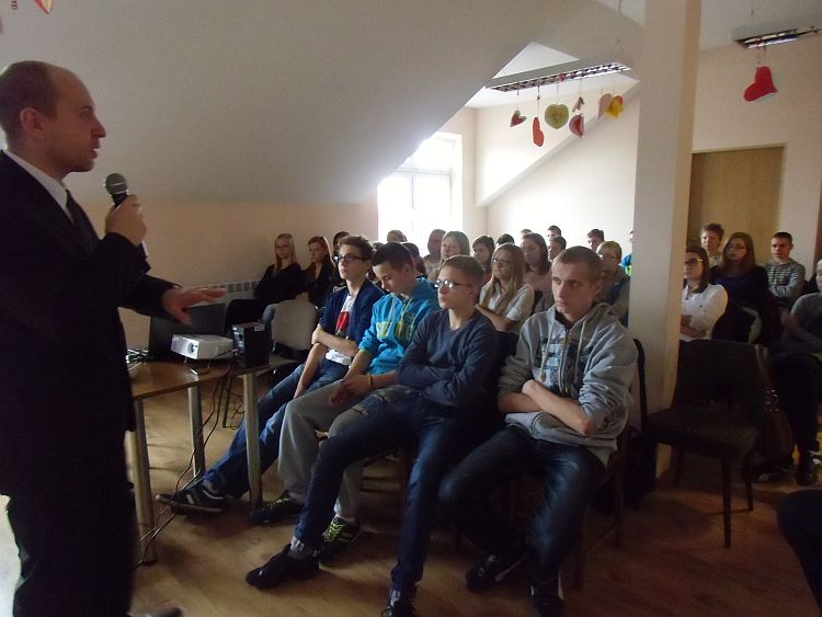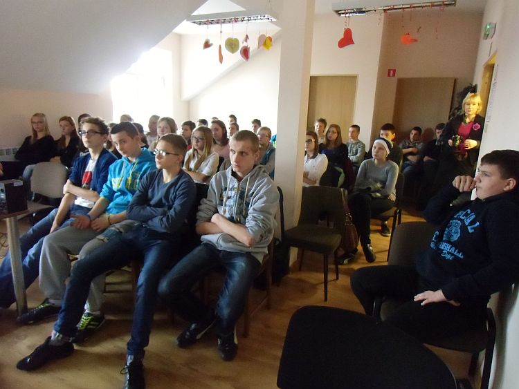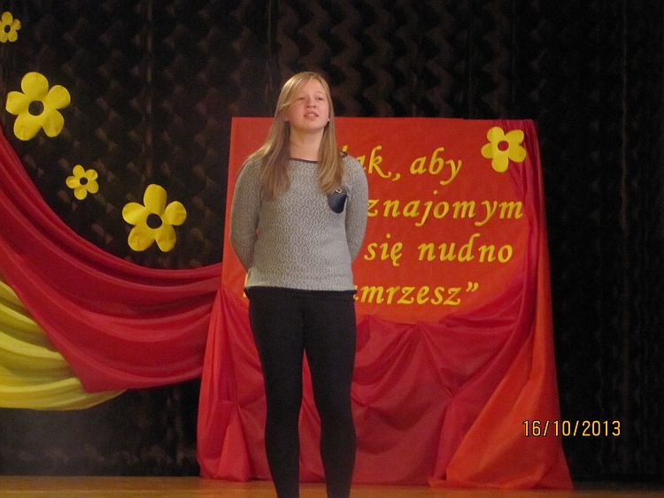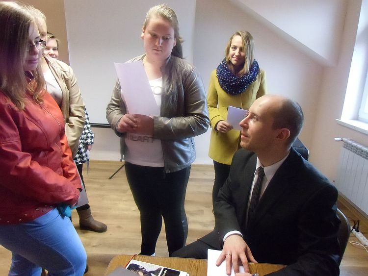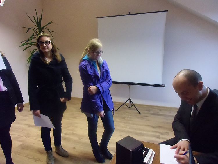 W dniu 21.11.2013 r. na zaproszenie Gminnej Biblioteki Publicznej odpowiedział Miłosz Kamil Monasterski – poeta, prozaik, menadżer kultury, laureat wielu prestiżowych nagród. Jury festiwalu XXXVI Międzynarodowy Listopad Poetycki w Poznaniu uznało jego książkę „Tuwim.Inspiracje” za jedną z pięciu najlepszych książek poetyckich roku 2013. Spotkanie z gimnazjalistami miało charakter prelekcji multimedialnej „Tuwim.Inspiracje” przygotowanej wokół nagrodzonej książki. Tuwim w rytmie rapu i hip-hopu przemówił do uczuć i wyobraźni młodych ludzi. Jak się okazało wiersz „Rzepka” jest świetnym tekstem do komponowania tego rodzaju muzyki. „Rzepka” w wykonaniu zespołu „Mezo” i „Vito WS” brzmiała nieprawdopodobnie, a jednak… warto posłuchać. Miłosz Kamil Monasterski opowiadał o ciekawych faktach z biografii Juliana Tuwima, czy Tuwim może być inspirujący w XXI wieku, a także o tym iż jego twórczość jest nadal aktualna pomimo upływu lat. Przedstawił on poezję w nieco innym wydaniu, przekonywał młodzież, że to nie taki nudny i nieciekawy temat, że można ją czytać i interpretować na wiele sposobów. Uzasadniał dlaczego czytanie poezji rozwija oraz czy pisanie wierszy pomaga w miłości i życiu. Całość prelekcji przeplatana była anegdotami i zabawnymi historiami z życia. Zapraszamy do zapoznania się z książką autora, będąca w zbiorach biblioteki oraz na strony internetowe: