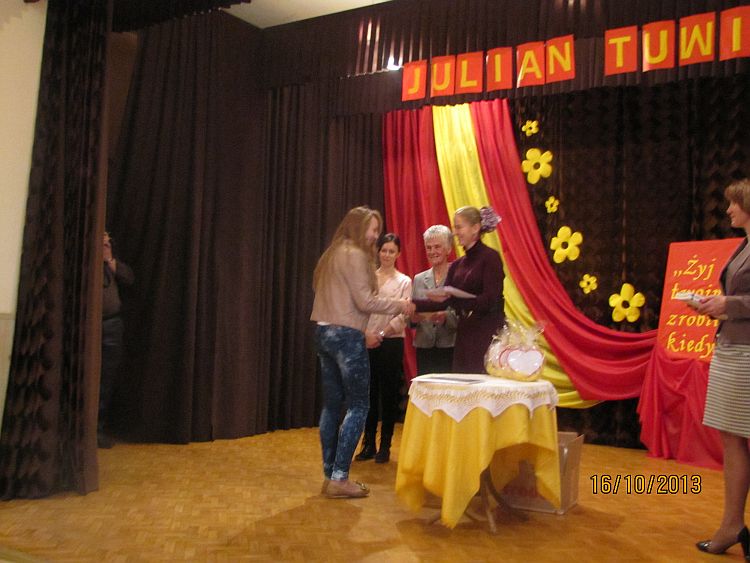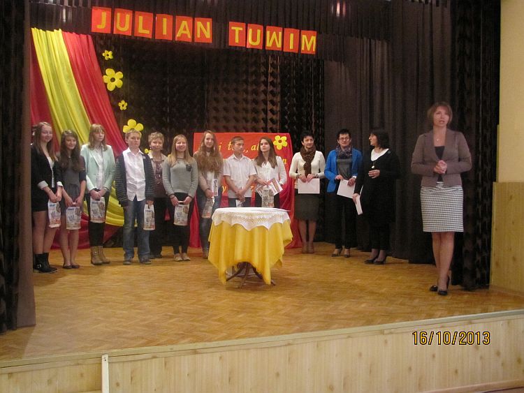 Kolejnym wydarzeniem związanym z Rokiem Tuwima był udział dzieci i młodzieży w konkursie recytatorskim. Gminna Biblioteka Publiczna w Klonowie zaprosiła na tą imprezę biblioteczną sąsiadujące biblioteki gminne. W konkursie recytatorskim pn. „Magia poezji Juliana Tuwima” wzięły udział uczennice Szkoły Podstawowej – Weronika Świątek, Daria Klatka i Gimnazjum – Aleksandra Smardz i Martyna Buda, która zajęła trzecie miejsce w swojej kategorii. Uczennice przygotowywały nauczyciele języka polskiego – pani Elżbieta Plichta i Monika Borkowska. Konkurs miał na celu ukazanie piękna poezji Juliana Tuwima, rozwijanie zainteresowania poezją i zdolności recytatorskich oraz uczenie rywalizacji w przyjaznej atmosferze. Wszyscy uczestnicy otrzymali pamiątkowe dyplomy i upominki oraz czekał na nich słodki poczęstunek.