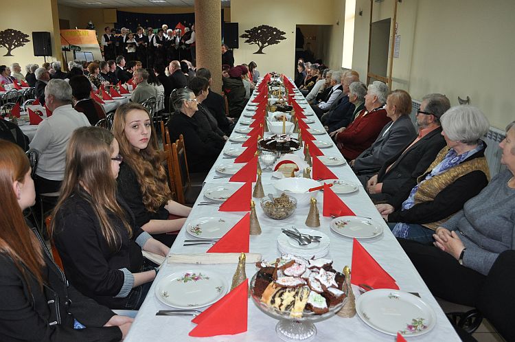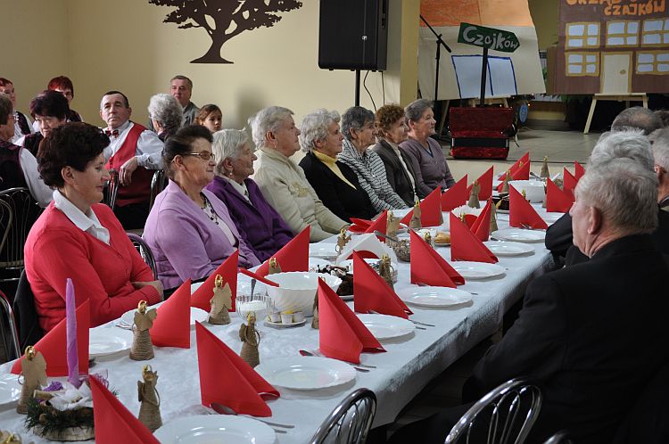 Spotkanie wigilijne rozpoczęło się przedstawieniem świątecznym w wykonaniu młodzieży z Gimnazjum w Czajkowie pod kierunkiem Macieja Zadki. Życzenia świąteczne złożyli wszystkim obecnym Wójt Gminy Henryk Plichta oraz proboszcz parafii Czajków Andrzej Chrobak. Następnie wszyscy uczestnicy spotkania podzielili się opłatkiem i złożyli sobie życzenia.