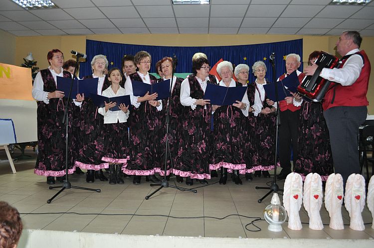 W świąteczny nastrój wprowadziły wszystkich zebranych kolędy zaintonowane przez zespół „Czajkowianki" pod przewodnictwem Pana Stefana Chowańskiego.