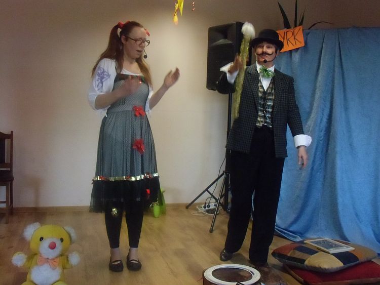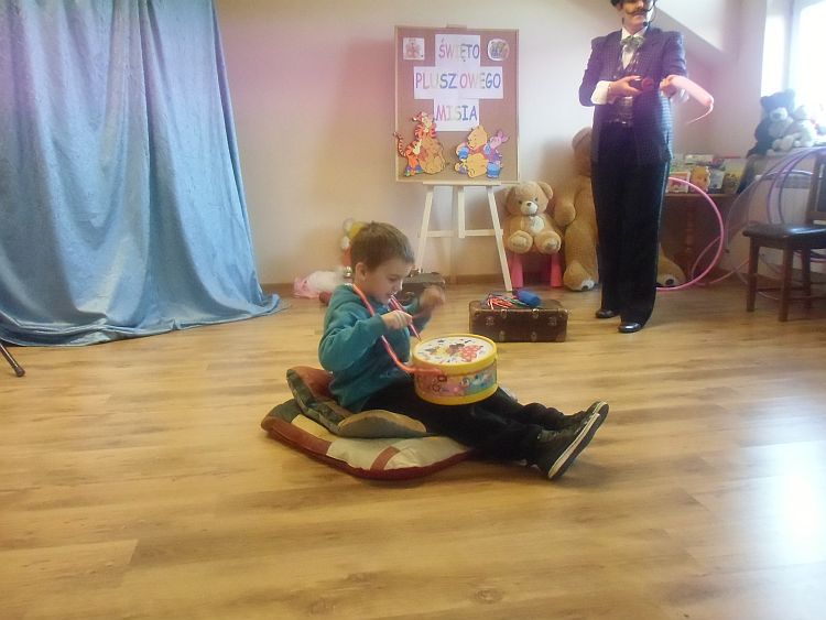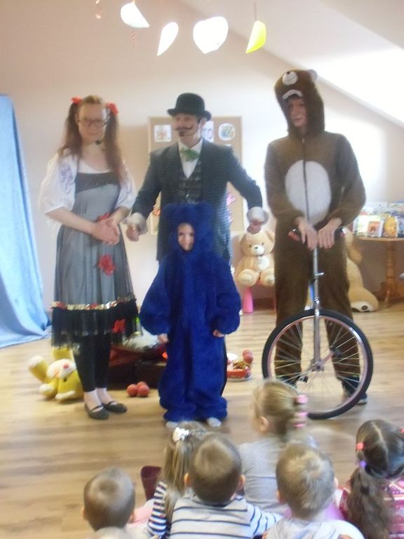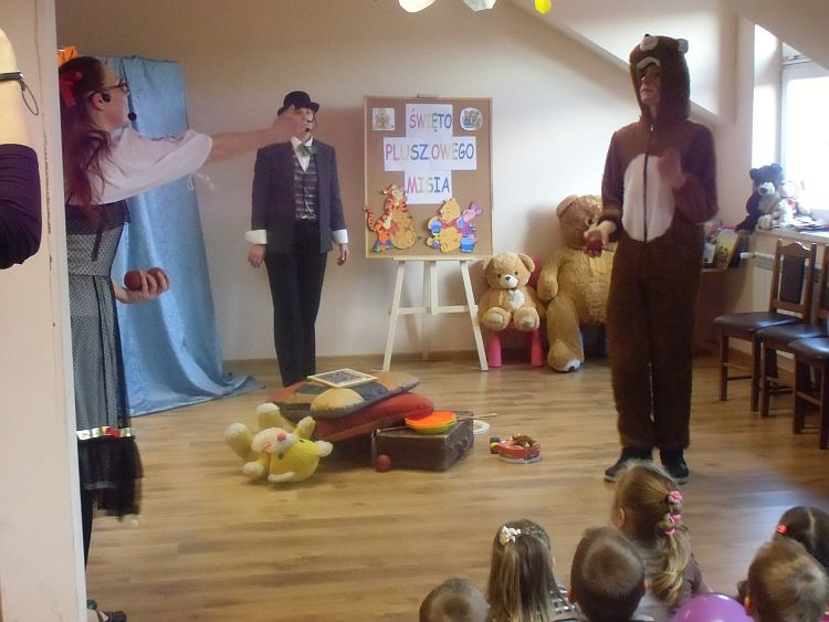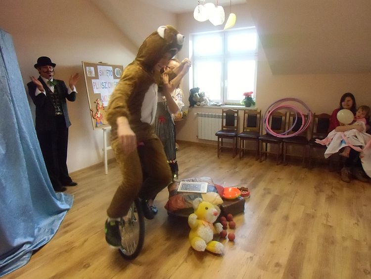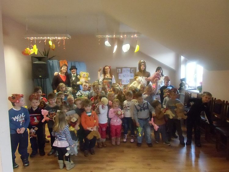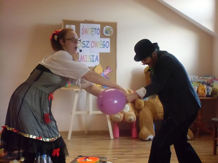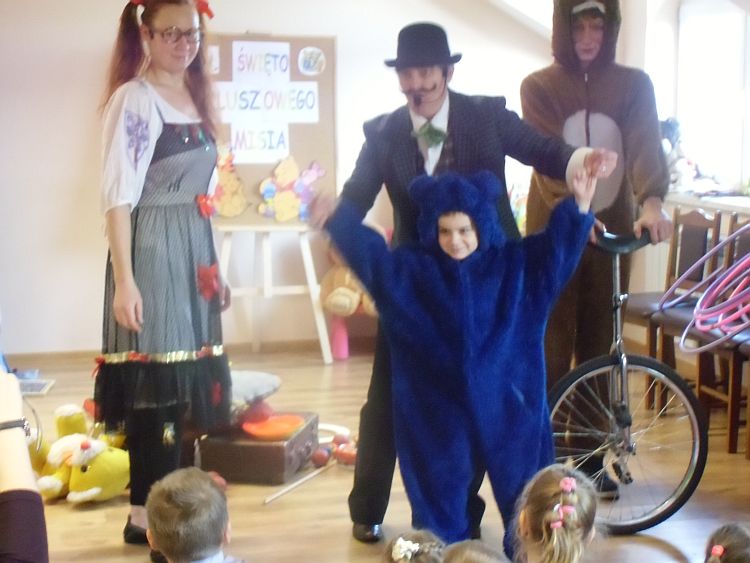 Biblioteka Publiczna także przyłączyła się w obchody Święta Pluszowego Misia. Na spotkanie przybyły dzieci z przedszkola i zerówka ze szkoły podstawowej wraz ze swoimi puchatymi i kolorowymi pupilami - misiami. Każda z przybyłych grup miała, z okazji tego święta, upominek. Przedszkolaki z publicznego przedszkola wręczyły piękny kwiat, natomiast dzieci z zerówki upodobniły się do swoich maskotek, gdyż każde miało założoną maskę misia oraz zaśpiewały mu piosenkę. Grupa przedszkolaków z punktu przedszkolnego prowadzonego przez Stowarzyszenie „Razem dla Czajkowa” wyrecytowała wierszyk oraz wykonała podobiznę misia na patyku (można je obejrzeć na wystawce w bibliotece). Uczestnicy spotkania mieli sporo atrakcji – najpierw posłuchali bajki o misiu, następnie wjechał do nich Miś Cyrkowiec na swoim jednokołowym rowerze w towarzystwie Zosi i dyrektora cyrku Tatka. Miś cyrkowiec zaprezentował dzieciom swoje umiejętności cyrkowe – żonglerki piłeczkami i hula-hopem, bumerangiem. W strój misia dzieci mogły się także przebrać i przejechać na rowerze, jak również każdy kto miał ochotę popróbować swoich umiejętności cyrkowych mógł to zrobić. Sporo było chętnych do zagrania na cyrkowym bębenku. Na spotkaniu nie zabrakło słodkiego „conieco” – miodku i ciasteczek, którymi dzieci się chętnie częstowały. Przy wesołej muzyce nasi milusińscy mogli się wspólnie bawić i śpiewać. Na koniec wszyscy otrzymali balonowego misia i zrobili pamiątkowe zdjęcie.
