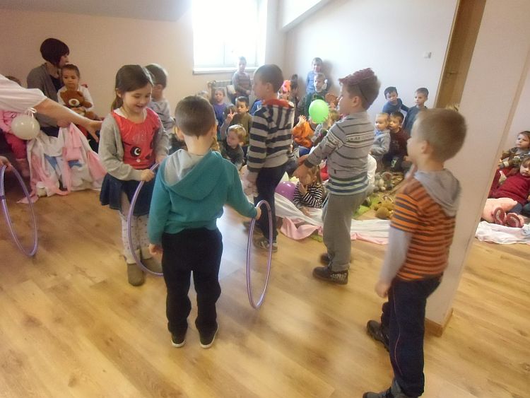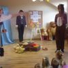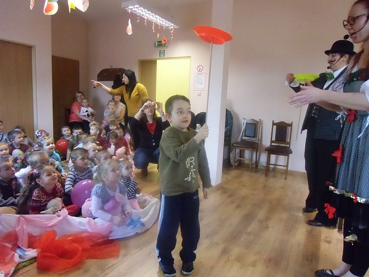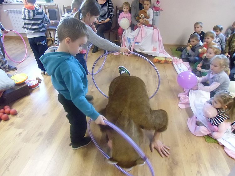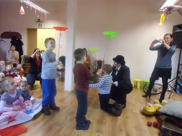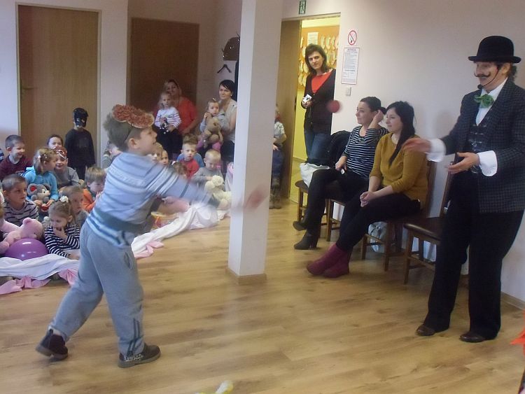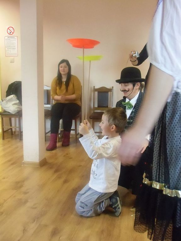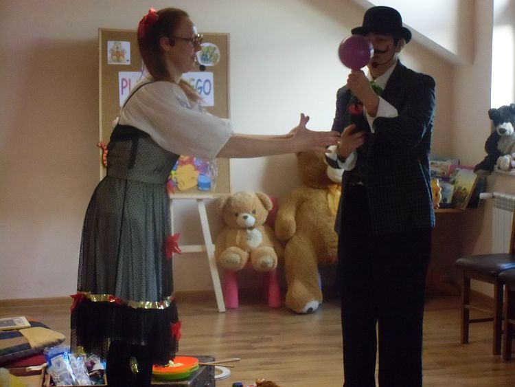 Biblioteka Publiczna także przyłączyła się w obchody Święta Pluszowego Misia. Na spotkanie przybyły dzieci z przedszkola i zerówka ze szkoły podstawowej wraz ze swoimi puchatymi i kolorowymi pupilami - misiami. Każda z przybyłych grup miała, z okazji tego święta, upominek. Przedszkolaki z publicznego przedszkola wręczyły piękny kwiat, natomiast dzieci z zerówki upodobniły się do swoich maskotek, gdyż każde miało założoną maskę misia oraz zaśpiewały mu piosenkę. Grupa przedszkolaków z punktu przedszkolnego prowadzonego przez Stowarzyszenie „Razem dla Czajkowa” wyrecytowała wierszyk oraz wykonała podobiznę misia na patyku (można je obejrzeć na wystawce w bibliotece). Uczestnicy spotkania mieli sporo atrakcji – najpierw posłuchali bajki o misiu, następnie wjechał do nich Miś Cyrkowiec na swoim jednokołowym rowerze w towarzystwie Zosi i dyrektora cyrku Tatka. Miś cyrkowiec zaprezentował dzieciom swoje umiejętności cyrkowe – żonglerki piłeczkami i hula-hopem, bumerangiem. W strój misia dzieci mogły się także przebrać i przejechać na rowerze, jak również każdy kto miał ochotę popróbować swoich umiejętności cyrkowych mógł to zrobić. Sporo było chętnych do zagrania na cyrkowym bębenku. Na spotkaniu nie zabrakło słodkiego „conieco” – miodku i ciasteczek, którymi dzieci się chętnie częstowały. Przy wesołej muzyce nasi milusińscy mogli się wspólnie bawić i śpiewać. Na koniec wszyscy otrzymali balonowego misia i zrobili pamiątkowe zdjęcie.