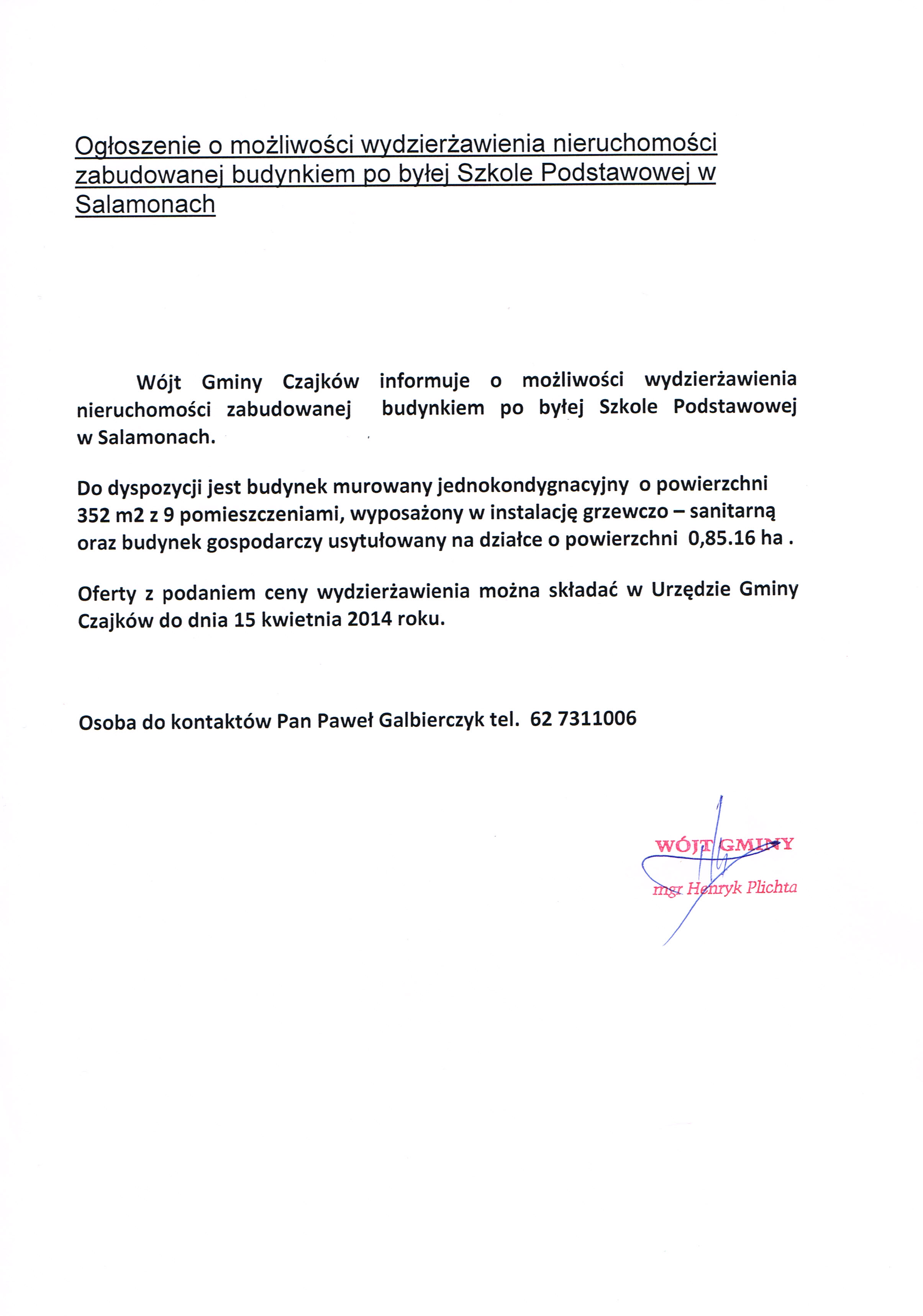 Tel.: 62/73 11 006 Tel.: 62/73 11 020 Fax: 62/73 11 034E-mail: sekretariat@czajkow-gmina.pl