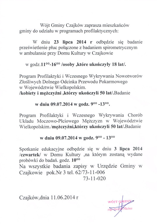 Tel.: 62/73 11 006 Tel.: 62/73 11 020 Fax: 62/73 11 034E-mail: sekretariat@czajkow-gmina.pl