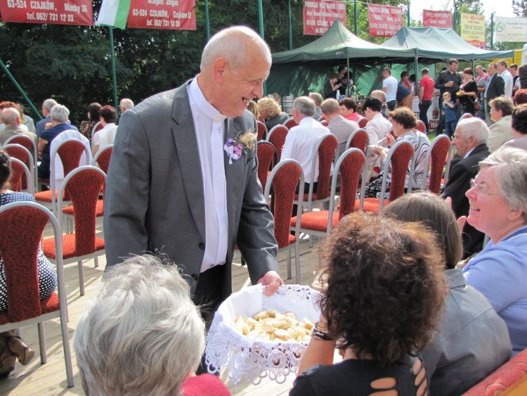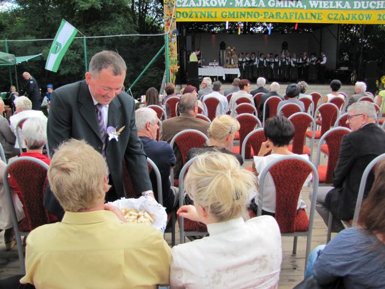 17 sierpnia w Czajkowie odbyły się Dożynki Gminno-Parafialne, które tradycyjnie rozpoczęto Mszą św. dziękczynną za tegoroczne plony. Mszę odprawił proboszcz czajkowskiej parafii ks. Andrzej Chrobak. Starostami dożynek byli Danuta Kasperska z Much oraz Dariusz Tokarek z Czajkowa, którzy w czasie mszy w imieniu wszystkich rolników gminy Czajków złożyli chleb jako wotum dziękczynne za tegoroczne zbiory. Po nabożeństwie, sprzed kościoła ruszył tradycyjny barwny korowód dożynkowy, przygotowany przez poszczególne sołectwa gminy. Nie zabrakło żartobliwych pomysłów, odwołujących się do życia dnia codziennego. Uroczystość obrzędowa rozpoczęła się odśpiewaniem hymnu państwowego oraz powitaniem wszystkich przybyłych gości przez Wójta Gminy. Następnie przedstawiciele sołectwa Czajków wnieśli dożynkowy wian, a starostowie dożynek – Danuta Kasperska i Dariusz Tokarek- przekazali dorodny bochen chleba upieczony z tegorocznych zbóż gospodarzom dożynek: wójtowi gminy Henrykowi Plichcie oraz ks. Andrzejowi Chrobakowi. Po zakończeniu części obrzędowej wszyscy chętni udali się na stoiska kulinarne, by skosztować naszych regionalnych potraw. Występy Zespołu Czajkowianki, Orkiestry Dętej, Mażoretek oraz zespołu młodzieżowego „SIERŚCIUCHY” umilały czas popołudniowej imprezy. Po części artystycznej rozegrano, zapoczątkowany w ubiegłym roku, II Dożynkowy Turniej Sołectw. Reprezentanci sześciu sołectw: Salamon I, Salamon II, Czajkowa, Mielcuch Pierwszych, Klonu i Much rywalizowali ze sobą w pięciu konkurencjach: deptanie balonów, przenoszenie wody z wiadra do wiadra, rzut jajkiem, rzut gumofilcem do kosza, slalom z mopem i piłką oraz bieg narciarski. Zwycięzcami turnieju zostało sołectwo Salamon I. Wójt Gminy Czajków Henryk Plichta wręczył zwycięskiej drużynie okazały puchar oraz talon o wartości 400 zł. Każda startująca drużyna otrzymała upominek w postaci czajnika elektrycznego. O godz 19.30 na scenie powił się sobowtór Maryli Rodowicz –DRUGA MARYLA, a zaraz po niej wystąpił Leszek Wiklak. Kulminacją imprezy był pokaz sztucznych ogni oraz zabawa taneczna do białego rana.