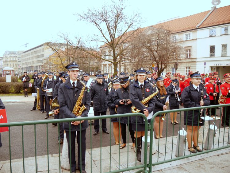 Uroczystość złożenia wieńców przed pomnikiem Wincentego Witosa na Placu Trzech Krzyży poprzedził blisko dwugodzinny koncert. Czajkowskiej orkiestrze towarzyszyła grupa mażoretek przykuwając uwagę publiczności.
