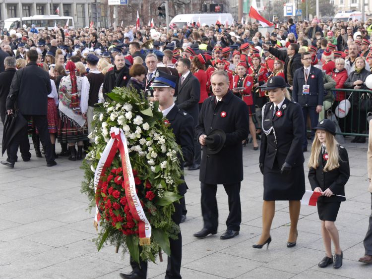 Główne uroczystości Narodowego Święta Niepodległości odbyły się przy Grobie Nieznanego Żołnierza na Placu Marszałka Józefa Piłsudskiego w Warszawie. Po raz trzeci w historii wyruszył również marsz „Razem dla Niepodległej”, którego trasa podobnie jak w latach poprzednich wiodła szlakiem pomników bohaterów narodowych, zasłużonych dla niepodległości Polski.
