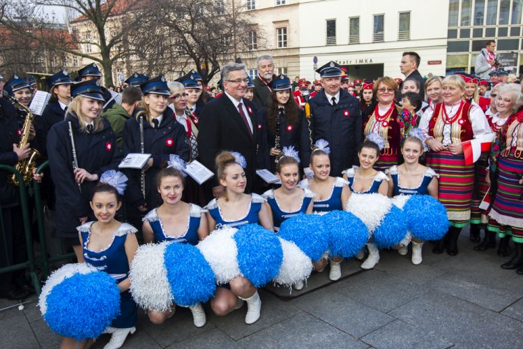 Udział wzięli m.in. Prezydent RP Bronisław Komorowski wraz z małżonką Anną, marszałkowie sejmu i senatu, ministrowie Kancelarii Prezydenta, premier Ewa Kopacz, ministrowie rządu, Prezes Zarządu Głównego Związku Ochotniczych Straży Pożarnych RP Waldemar Pawlak, kompanie honorowe służb mundurowych, grupy rekonstrukcyjne oraz mieszkańcy Warszawy.