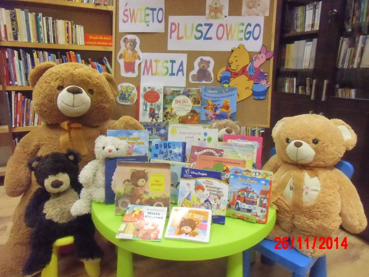 Zachęcamy do odwiedzin pluszowych misiów na wystawie w bibliotece oraz do poczytania opowieści, bajek tych jakże sympatycznych i radosnych maskotek.