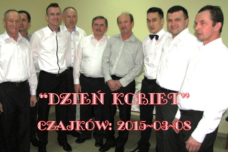 Wstępem do uroczystości były życzenia zaadresowane do wszystkich zgromadzonych Pań złożone przez pana Wójta Gminy Czajków Henryka Plichtę w imieniu wszystkich mężczyzn zamieszkujących naszą gminę oraz samorządu gminnego. Wójt mówił do Pań „... aby podczas dzisiejszej uroczystości nie zwracały uwagi na niedoskonałości w obsłudze i troszeczkę od Panów dzisiaj wymagały. Życzę Paniom szczęścia bo jeżeli Wy jesteście szczęśliwe to i nam się żyje lepiej ...” Następnie głos zabrała i złożyła życzenia reprezentująca kobiecą część zaproszonych gości Pani Minister Andżelika Możdzanowska, która powiedziała – „... my jesteśmy wyjątkowe 365 dni w roku bo zawsze uśmiechnięte, zawsze szczęśliwe i zawsze chętne do pomocy i działania... Tutaj w Czajkowie czuć tą rodzinną atmosferę. A za rodzinną atmosferę zawsze odpowiada kobieta...” Następnie w imieniu Stowarzyszenia Razem Dla Czajkowa życzenia dla Pań przekazał p. Andrzej Puchała. W imieniu samorządu powiatowego życzenia Paniom złożyli Starosta Lech Janicki oraz Radni p. Jan Kędzia i Jerzy Mucha. W imieniu Zarządu Rejonowego Banku Spółdzielczego życzenia Paniom złożył p. Jerzy Łuszczek.