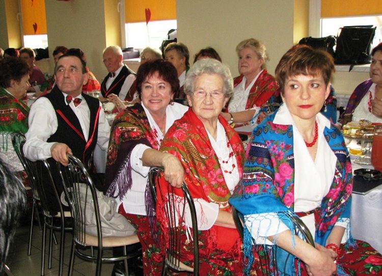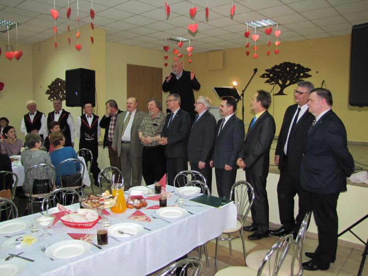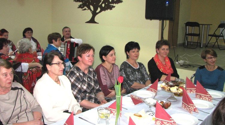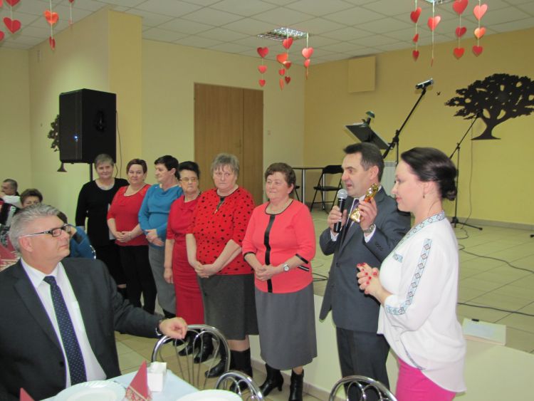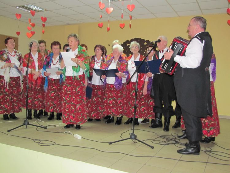 Następnie prowadzący część artystyczną Krzysztof Ogórkiewicz z Kabaretu „ Przyjaciele Benny Hilla” z Ostrowa Wlkp. poprosił wszystkich panów obecnych na spotkaniu do wspólnego odśpiewania „sto lat” dla wszystkich Pań. W kolejnej części spotkania jak zawsze z udanym występem zaprezentowały się Panie i Panowie z zespołu „Czajkowianki”.