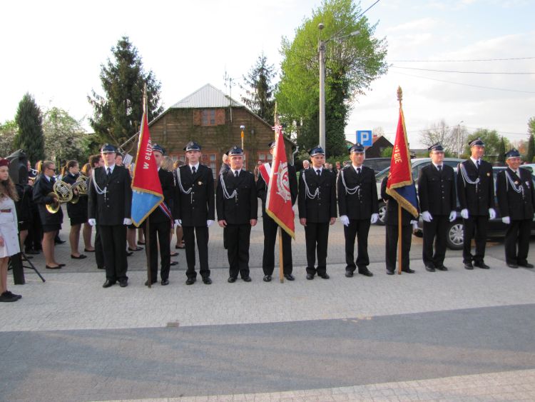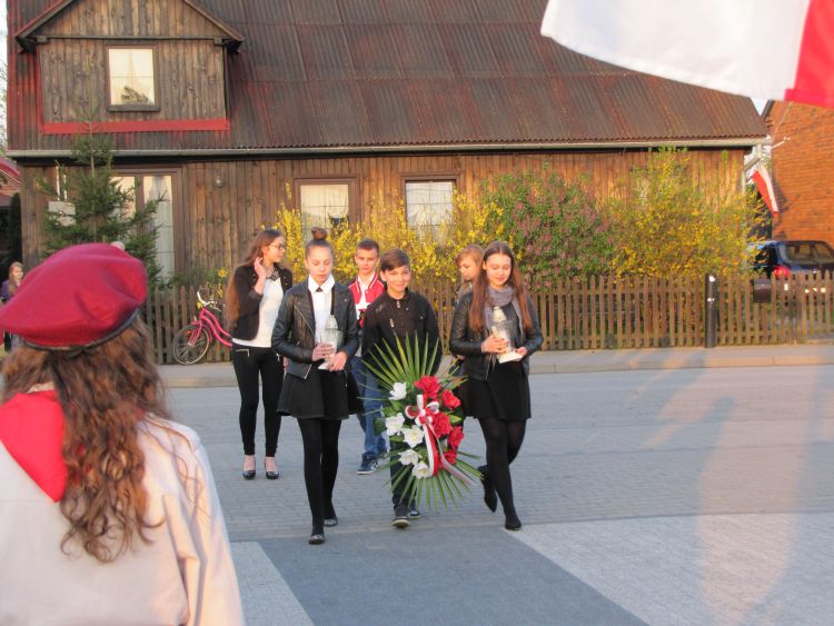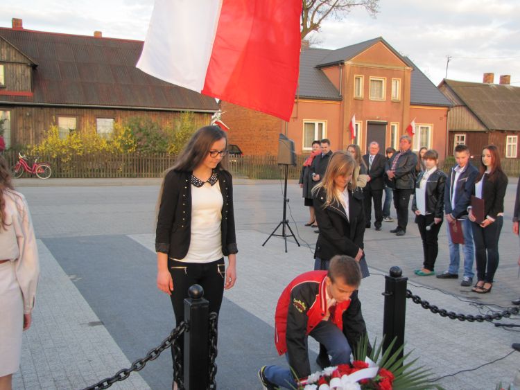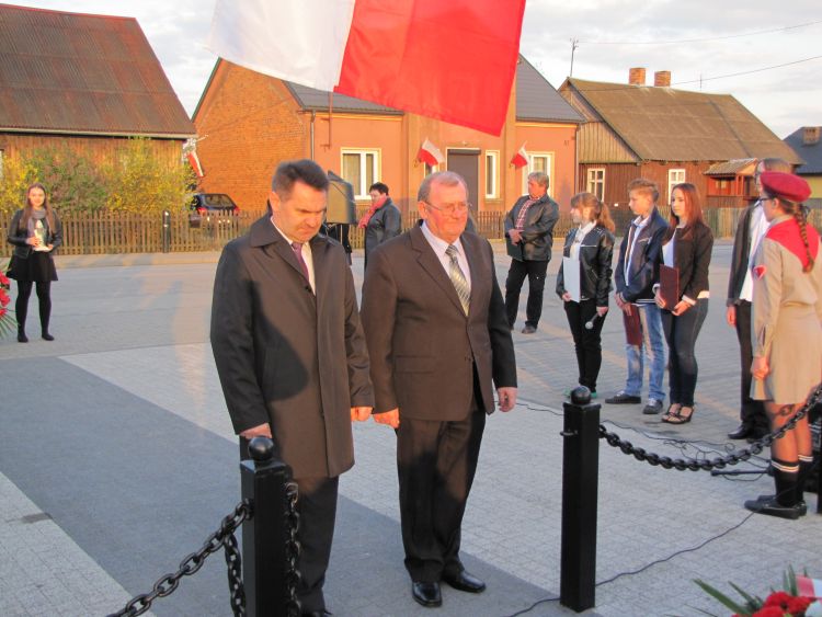 Po nabożeństwie w asyście pocztów sztandarowych i orkiestry dętej wszyscy uczestnicy uroczystości przemaszerowali pod pomnik „Poległych i pomordowanych w latach 1939-1945”. Patriotyczna część obchodów rozpoczęła się odśpiewaniem hymnu państwowego po którym z okolicznościowym przemówieniem wystąpił Wójt Gminy Henryk Plichta.