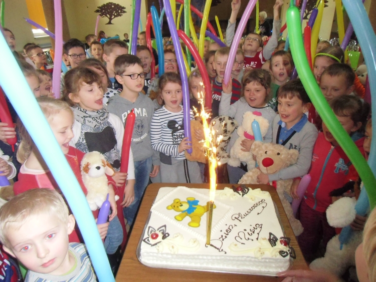 Jak co roku – 25 listopada – pluszowy miś obchodzi swoje urodziny. Z tej okazji Gminna Biblioteka Publiczna w Czajkowie przygotowała dla dzieci z przedszkoli, zerówek i z klas 1-3 szkoły podstawowej spotkanie urodzinowe. Swoje ulubione misie i pluszaki dzieci zabrały również z domu na to przyjęcie. Wszyscy wesoło, radośnie bawili się i świętowali w rytmach muzyki, dobrej zabawy i śmiechu. Jak to na urodzinach bywa, nie może zabraknąć wspaniałego tortu urodzinowego ze świeczkami, którego wszyscy skosztowali, łącznie z misiem.