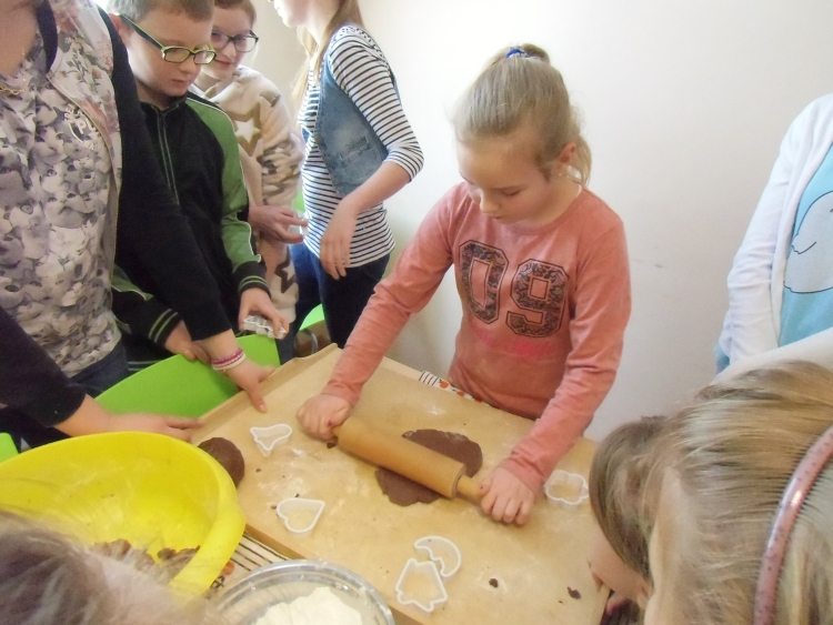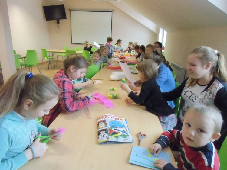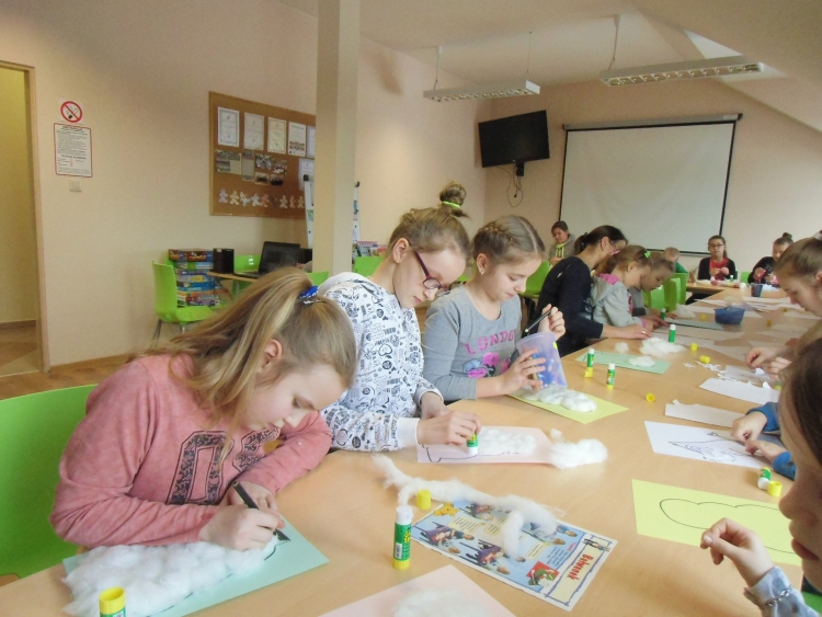 Biblioteka publiczna, podczas ferii, przygotowała dla dzieci różnego rodzaju zajęcia, aby wspólnie i pożytecznie spędzić wolny czas. Czytelnicy obejrzeli spektakl Teatru Maska z Krakowa, pt. „Skradzione mądrości”, w którym pokazano jak niezwykły wpływ ma na dzieci obcowanie z literaturą. „Skradzione mądrości” to pełna humoru i akcji opowieść o tym, że każda przeczytana książka jest prawdziwą przygodą. Uczestniczyli oni w zajęciach plastycznych, gdzie wspólnie przygotowywano upominki dla naszych babć i dziadków. Nie obyło się także bez akcentów zimowych, motywem przewodnim była „Zima w Dolinie Muminków”, gdzie dzieci wyklejały Muminka i towarzyszącego mu bałwanka. W międzyczasie nasi milusińscy mieli do dyspozycji gry planszowe, edukacyjne, układanki i quizy . Niemałą frajdą okazały się zajęcia kulinarne „Piernikowe szaleństwo”, gdzie każdy przyczynił się wykonania pierników, no i oczywiście do skonsumowania, wyszły nam bardzo, bardzo pyszne.