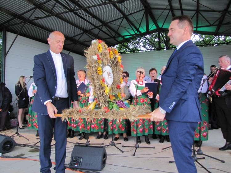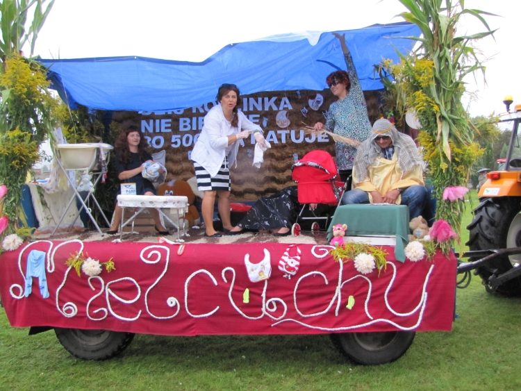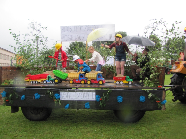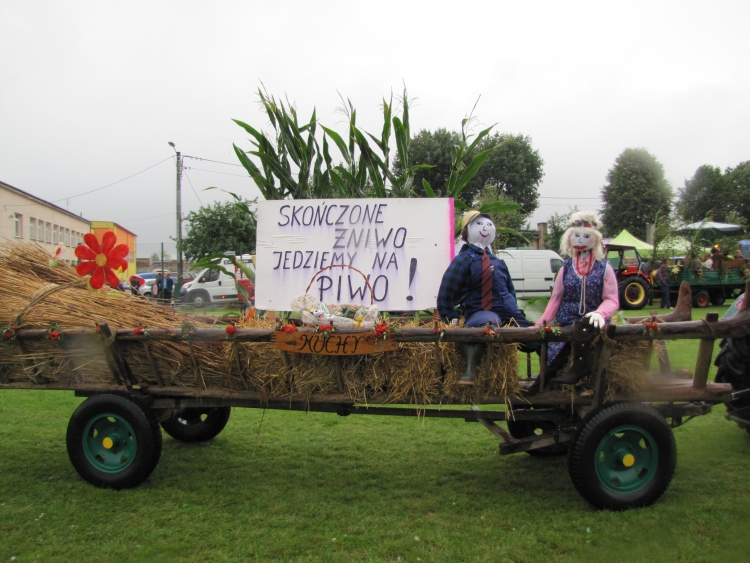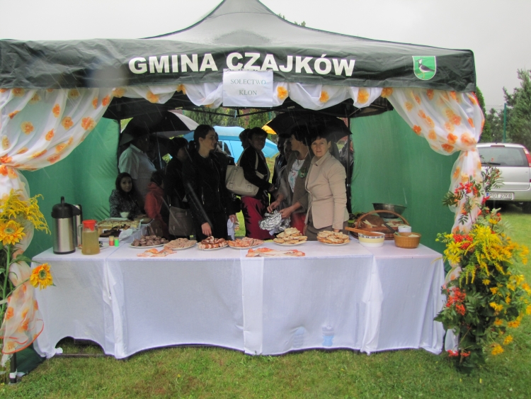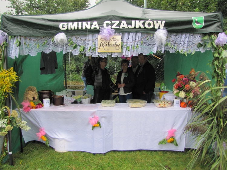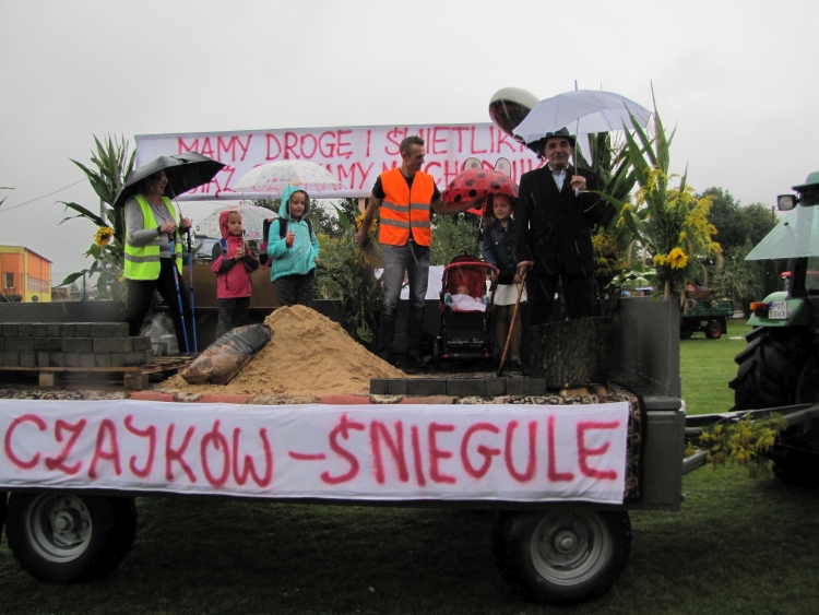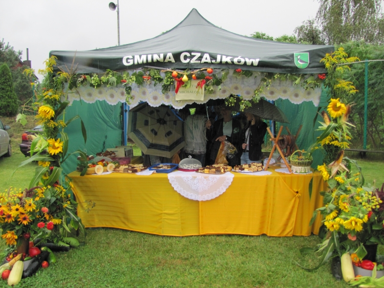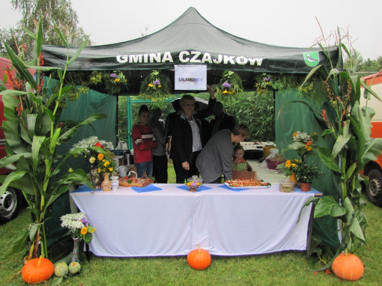W minioną niedzielę w naszej gminie odbyło się największe w roku święto gospodarskie rolników będące ukoronowaniem ich całorocznego trudu. Pomimo rzęsistego deszczu uroczystości rozpoczęły się mszą dożynkową w intencji rolników i ich rodzin. Msza została odprawiona przez proboszcza naszej parafii ks. Andrzeja Chrobaka. Starostami dożynek byli Agnieszka Kędzia z Salomon II oraz Marek Żychliński z Klonu, którzy w czasie mszy złożyli na ołtarzu wotum dziękczynne w imieniu wszystkich rolników gminy Czajków. Po mszy sprzed kościoła ruszył tradycyjny korowód dożynkowy, który poprowadziła Gminna Orkiestra Dęta wraz z Mażoretkami, następnie starostowie m wraz z gospodarzami dożynek, zaproszeni goście oraz Zespół Czajkowianki. Mieszkańcy sołectwa Czajków przysiółka Wysoty, wnieśli piękny wieniec dożynkowy, będący owocem pomyślnie ukończonych żniw. Jak co roku na stadionie zaprezentowano najnowsze maszyny i ciągniki rolnicze, a poszczególne sołectwa, na barwnie udekorowanych przyczepach przedstawiły dowcipne scenki z życia dnia codziennego. Uroczystość obrzędowa rozpoczęła się odśpiewaniem hymnu państwowego oraz powitaniem wszystkich przybyłych gości przez Wójta Gminy. Następnie przedstawiciele wsi Czajków - Pani Barbara Łuszczek i Pan Stanisław Korzański – przekazali gospodarzom dożynek Wójtowi Gminy Henrykowi Plichcie i proboszczowi Andrzejowi Chrobakowi dorodny bochen chleba upieczony z tegorocznych zbóż. Nowością tegorocznych obchodów był taniec wokół wieńca dożynkowego wykonany przez Zespół Czajkowianki oraz Wójta Gminy Czajków. Po części oficjalnej rozpoczęła się część artystyczna. Kolejno wystąpili: zespół Czajkowianki, Gminna Orkiestra Dęta z Mażoretkami, dzieci ze Szkoly Podstawowej w Czajkowie oraz ogniska muzycznego „Gama”. Bogaty repertuar artystyczny oraz piękne głosy zespołu „Klonowianie” wprowadziły mieszkańców gminy w biesiadny nastrój. W międzyczasie nastąpiło rozstrzygnięcie loterii fantowej, której nagrodę główną –rower, wygrał Kamil Golanowski z Much. Punktem kulminacyjnym wieczoru był występ Mirosława Elimera w repertuarze Czesława Niemena i Freddiego Mercurego zakończony pokazem sztucznych ogni i dyskoteką pod gwiazdami.